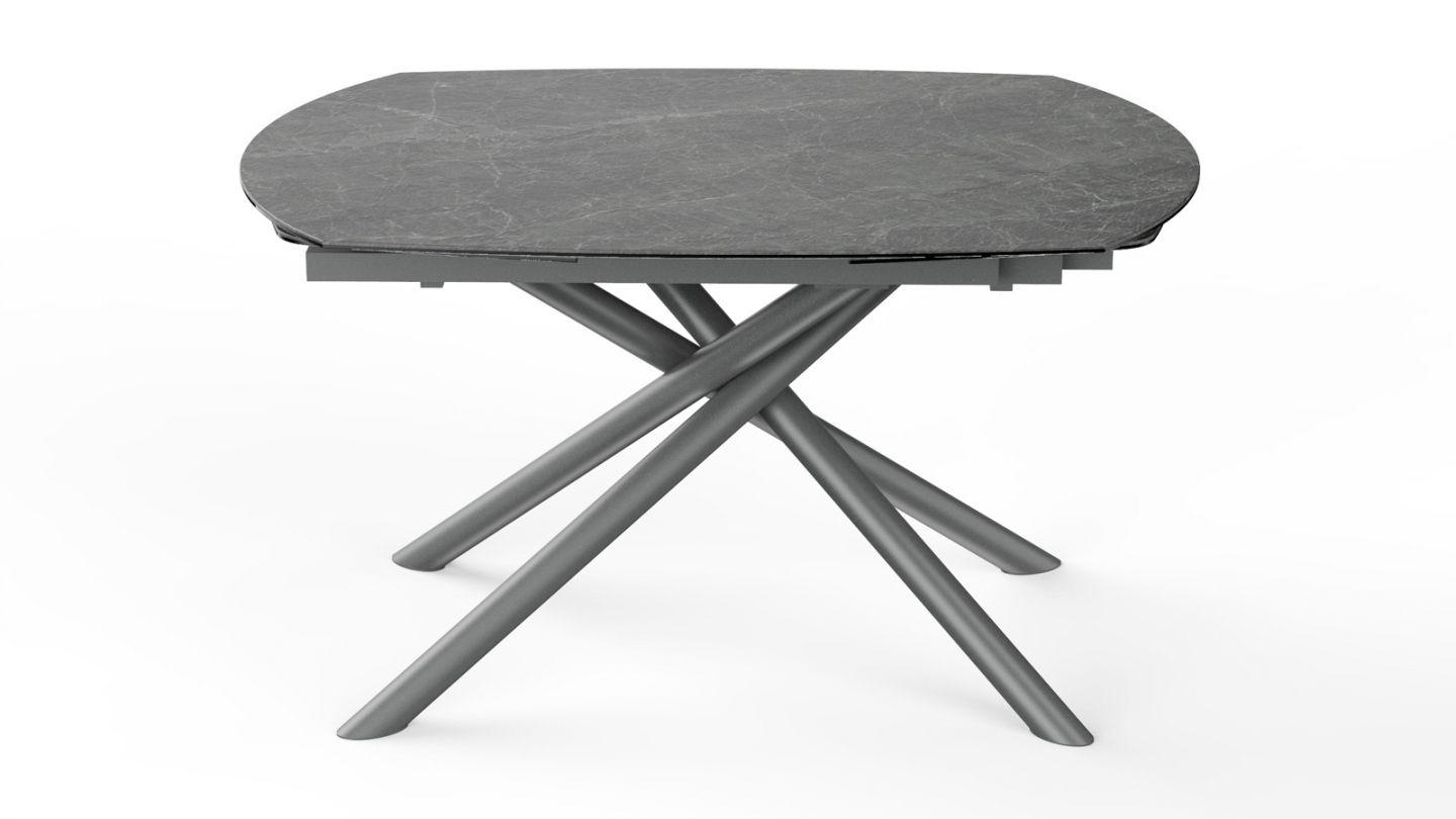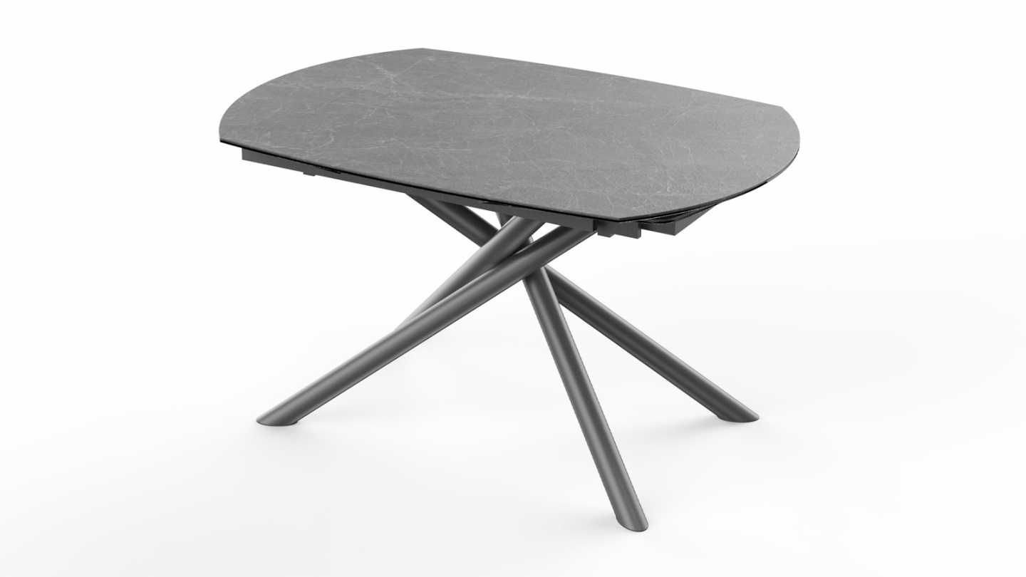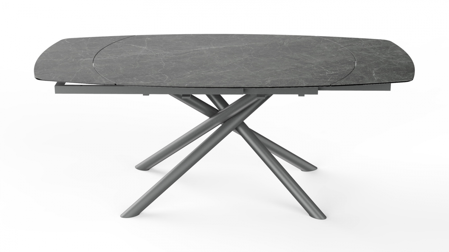 Compact et polyvalent, le format de la table Disko s'adapte aux petits comme aux grands espaces. Son plateau céramique gris anthracite aux extrémités arrondies s'étend de 130 à 190 cm grâce à ses 2 allonges sur rail.