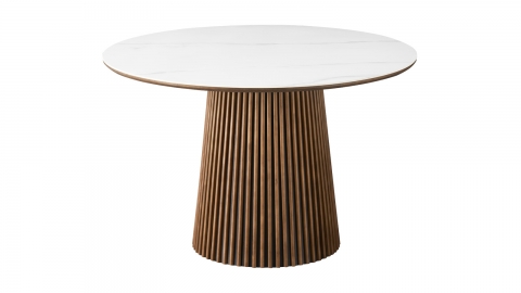 ;Table à manger ronde effet noyer avec plateau en céramique effet marbre - Ada<br />