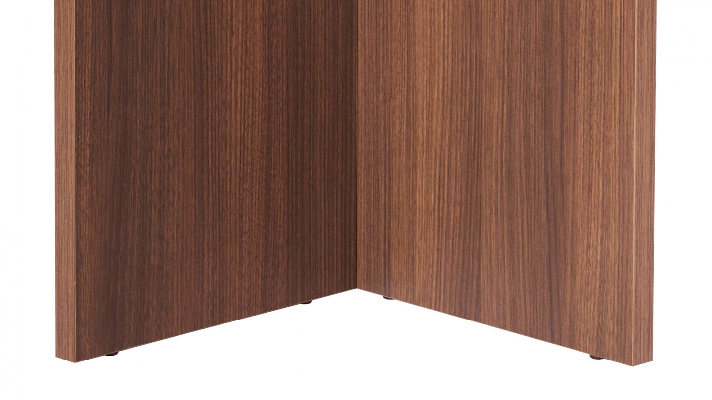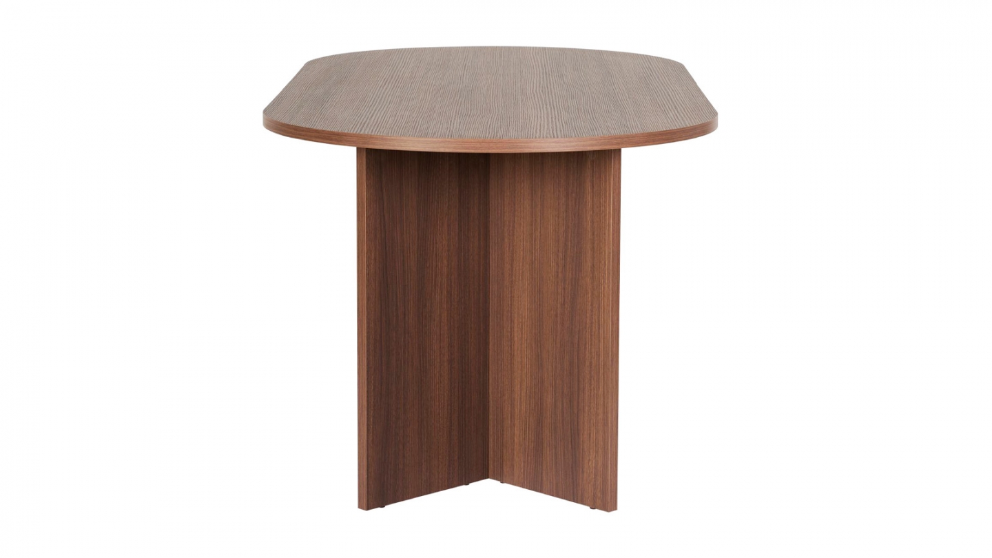 • Lignes douces et piètement en panneaux croisés pour un design épuré et lumineux.