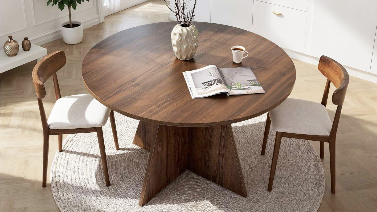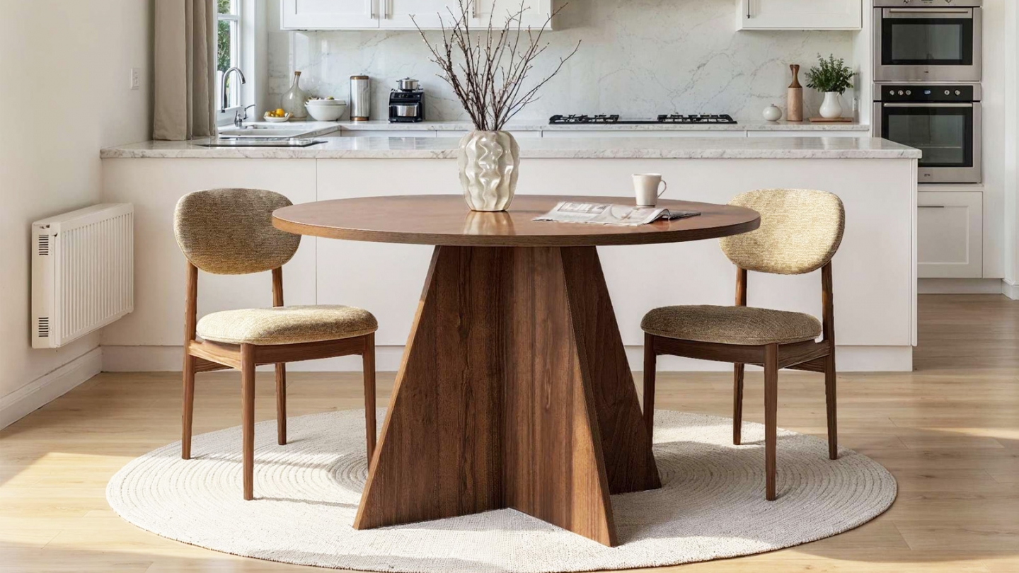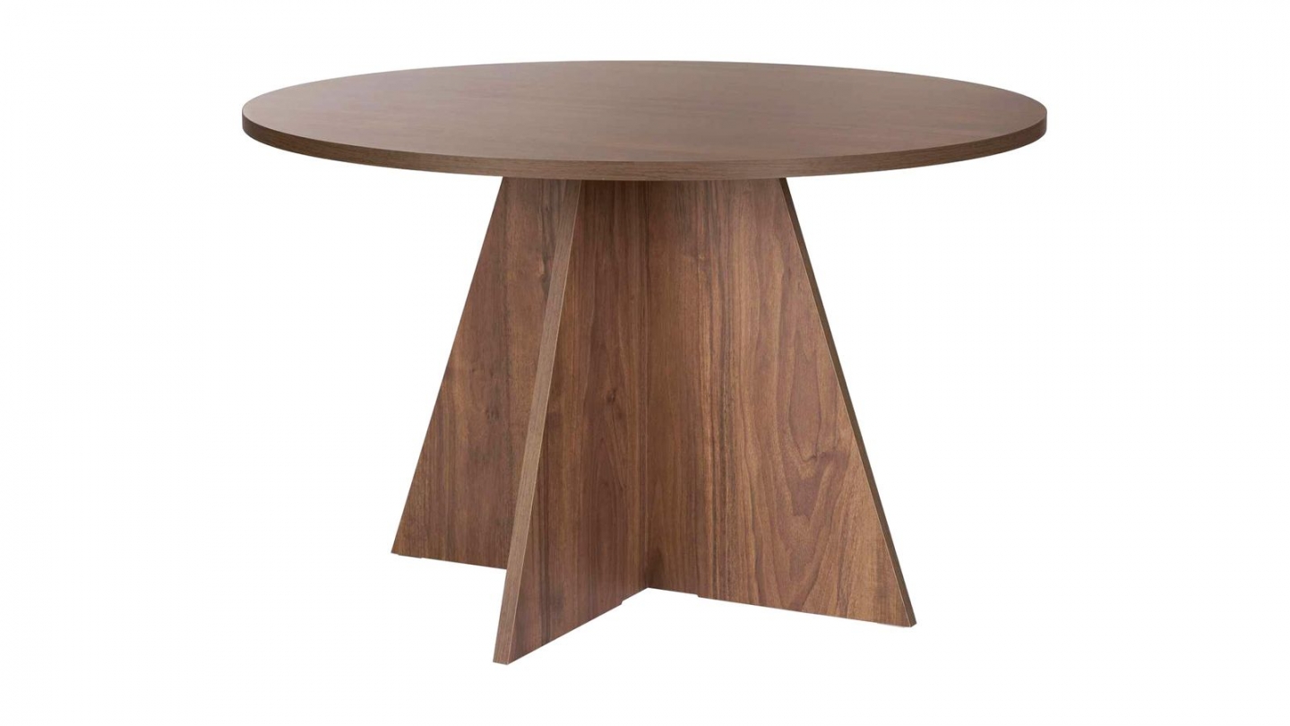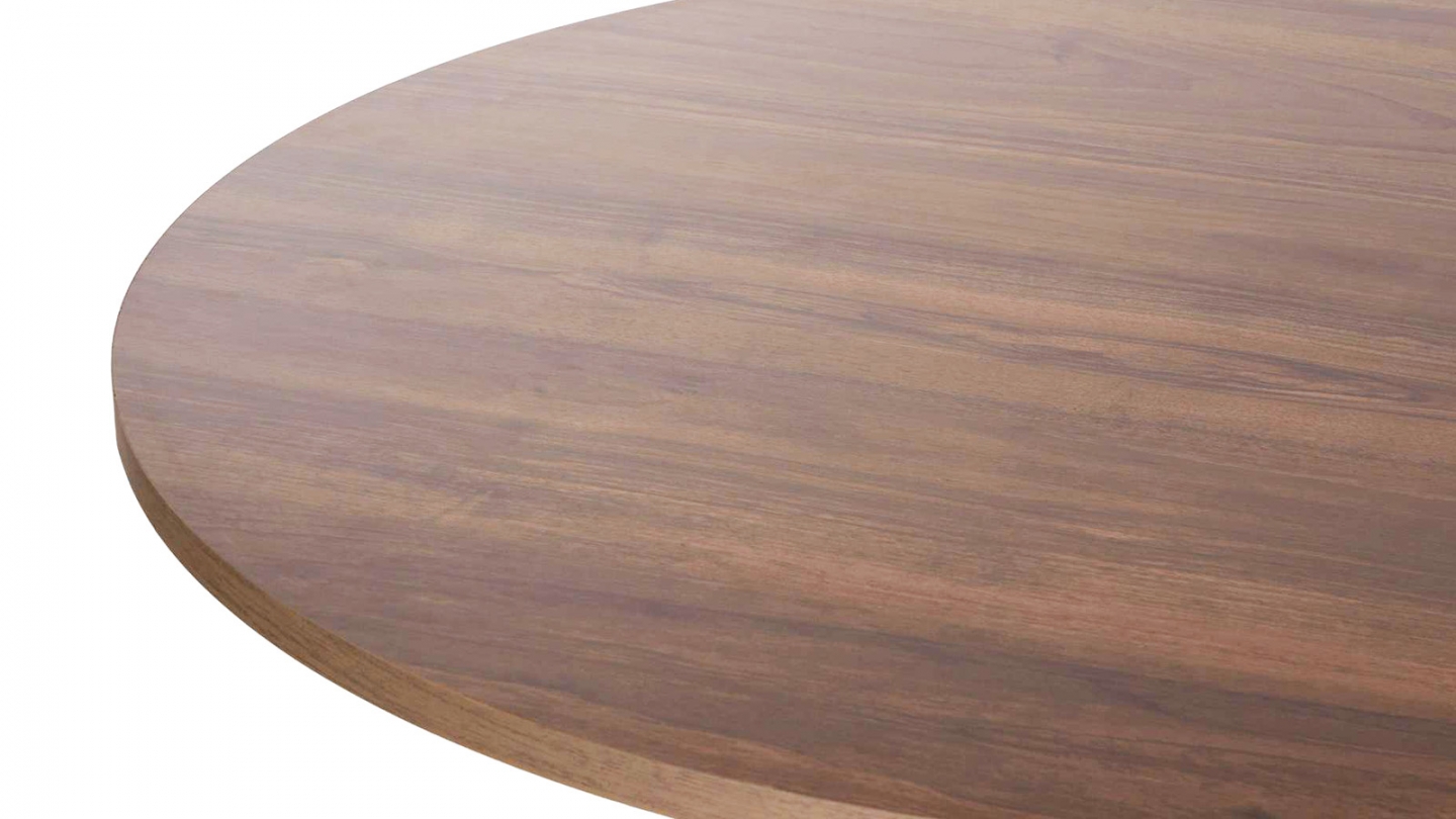 Table à manger - Norae• Matière : Mélamine• Couleur : Effet bois• Forme : ronde• Piètement central cônique en croix pour une allure conviviale et moderne• Dimensions totales : 120 x 120 x 75 cm