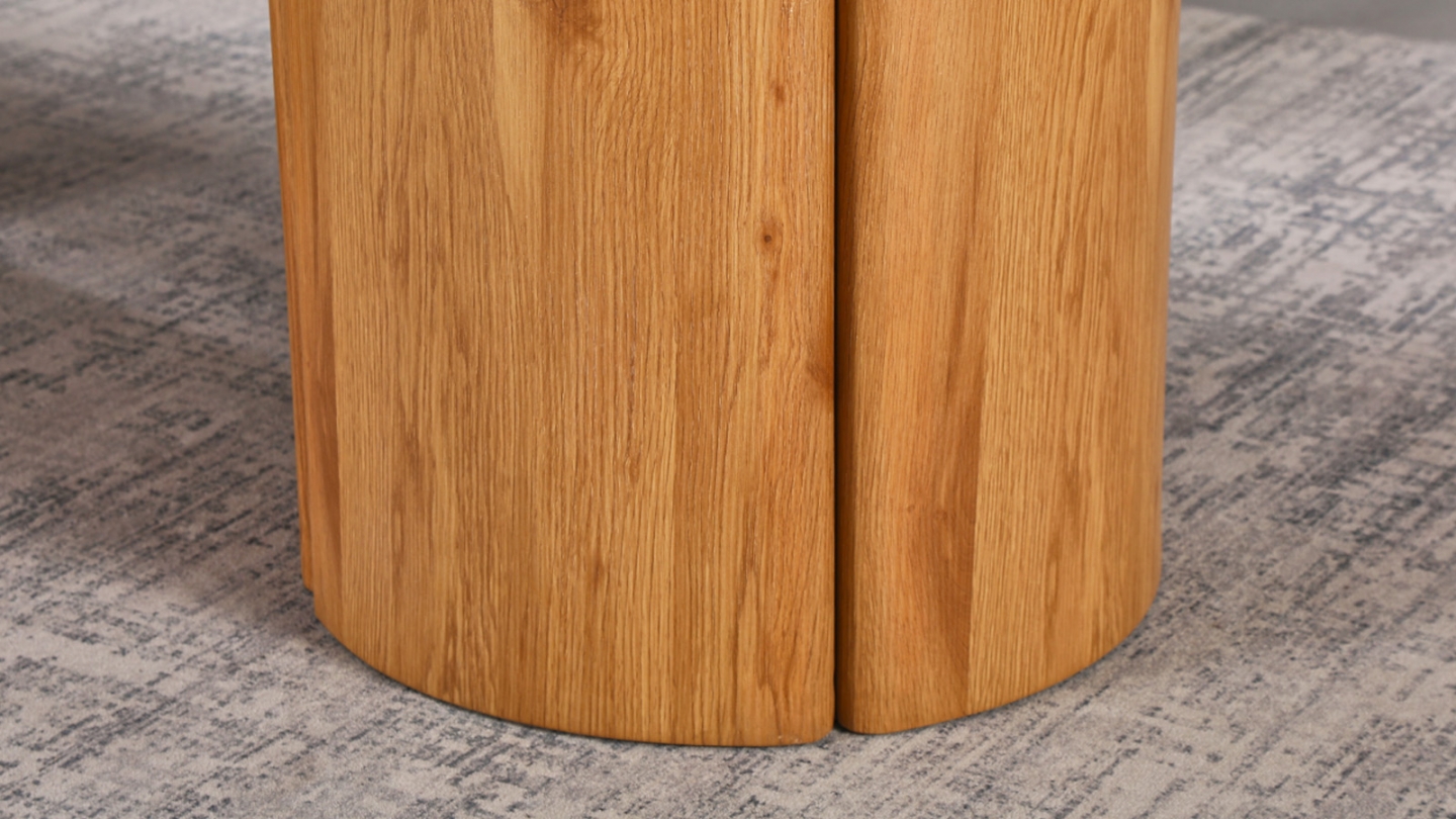 - Piètement en bois lobé, finition chêne clair