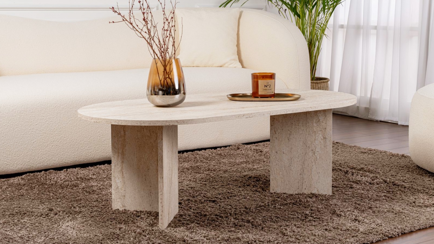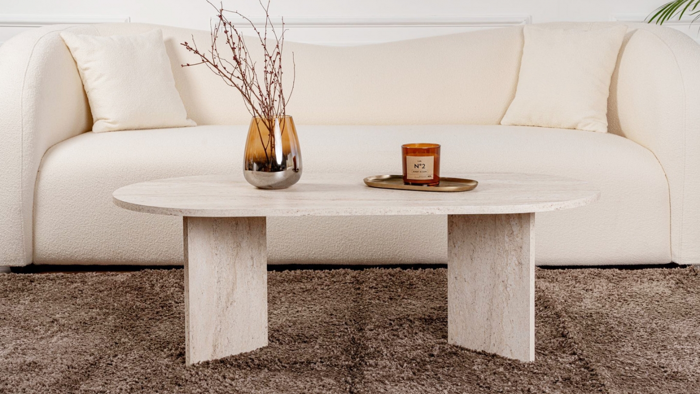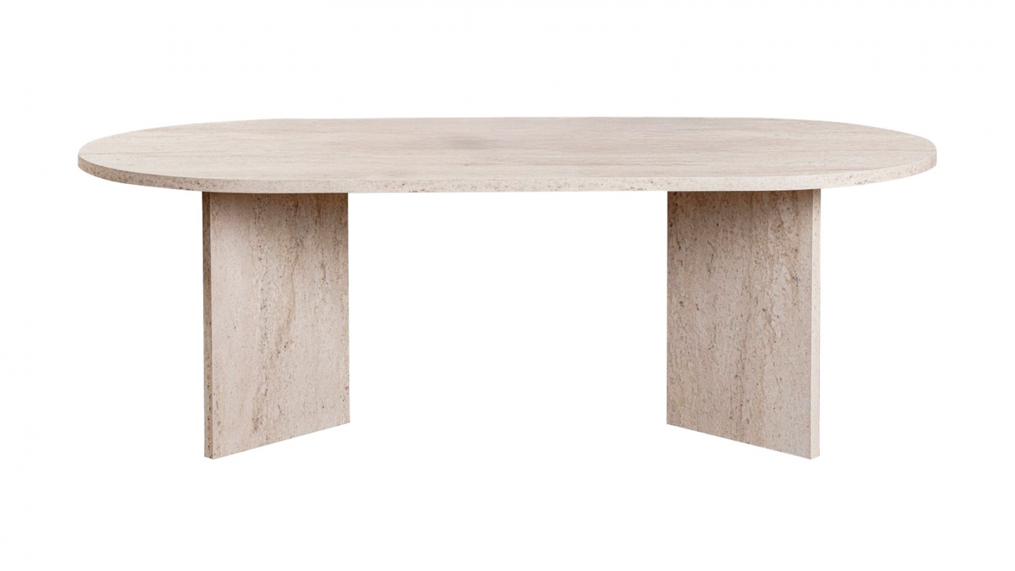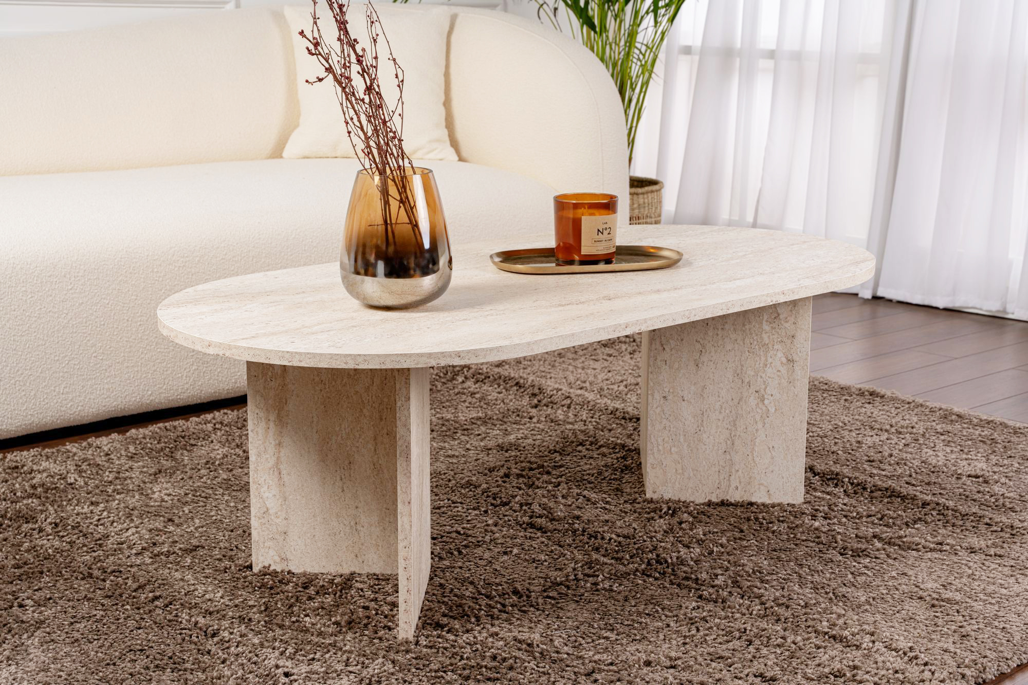 En stockTable basse - Orane• Matière : Mélamine• Couleur : Blanc• Forme : ovale• Piètement en panneaux croisés assurant une parfaite stabilité et un style graphique moderne.• Dimensions totales : 119 x 60 x 40 cm