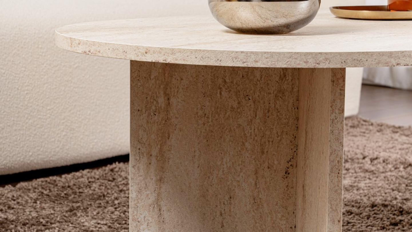 En stock<p>Table basse ronde avec plateau effet marbre <br /> • Couleur : marbre blanc / noyer<br /> • Matière principales : Bois <br> • Forme : ronde • Piètement : Bois couleur noyer effet cannelé<br /> • Hauteur : 40 cm<br /> • Diamètre : Ø 80 cm</p>