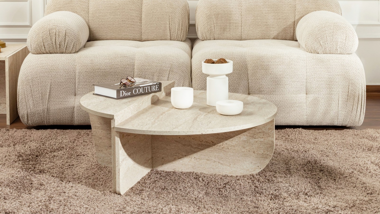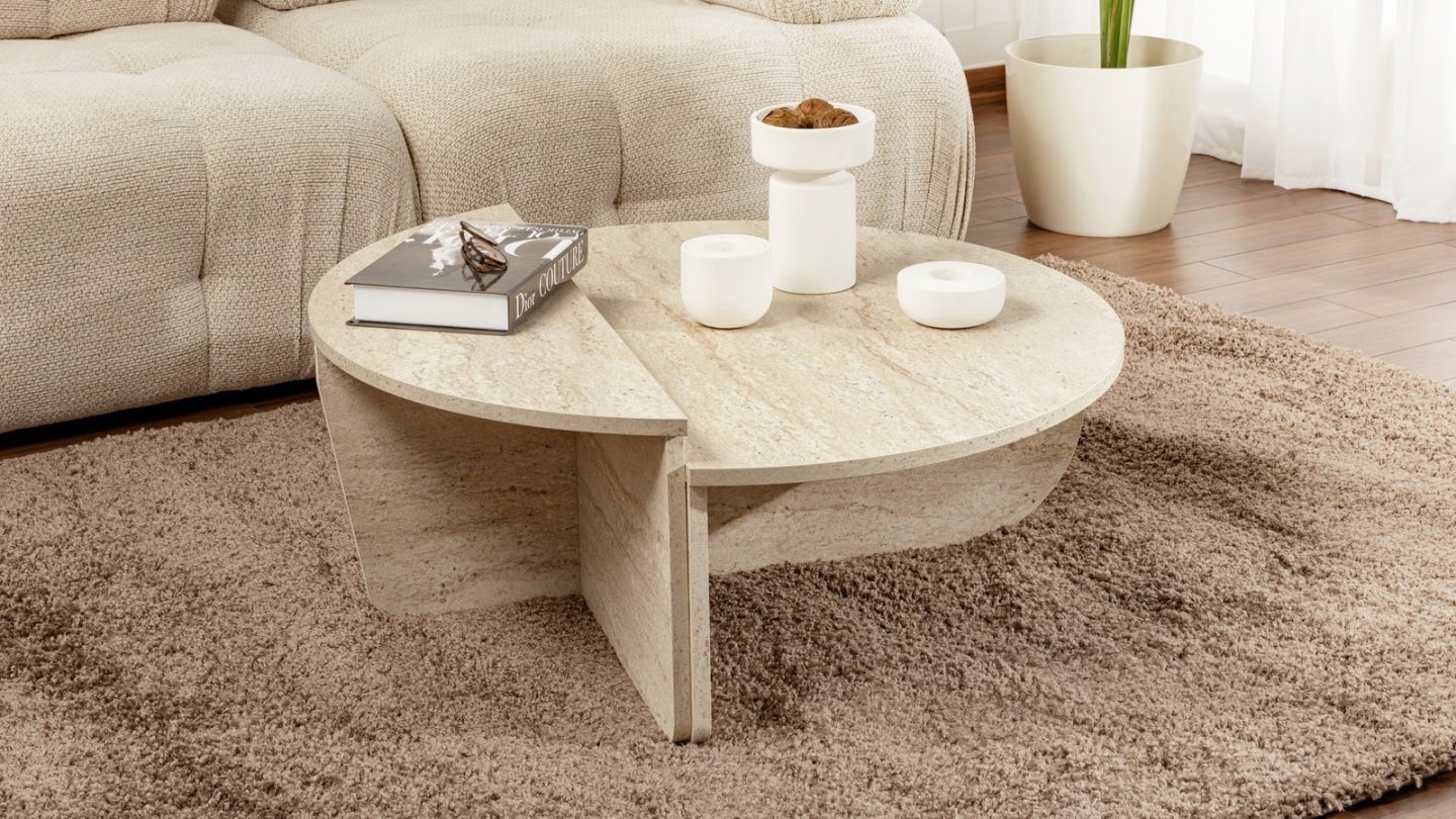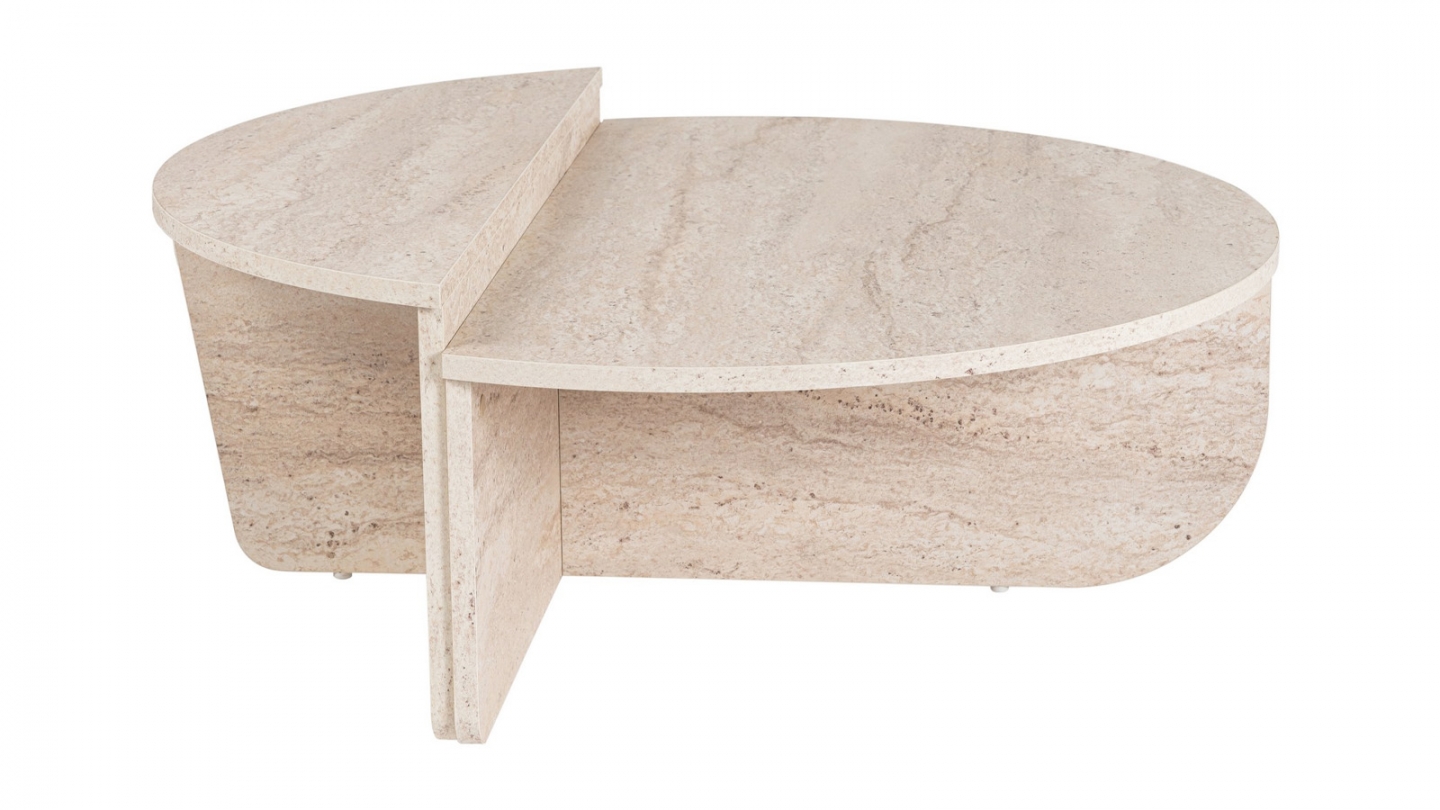 • Table basse modulable composée de deux éléments semi-circulaires, à utiliser ensemble ou séparément selon vos envies.