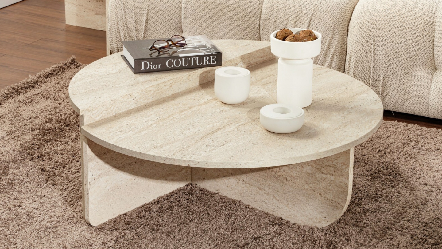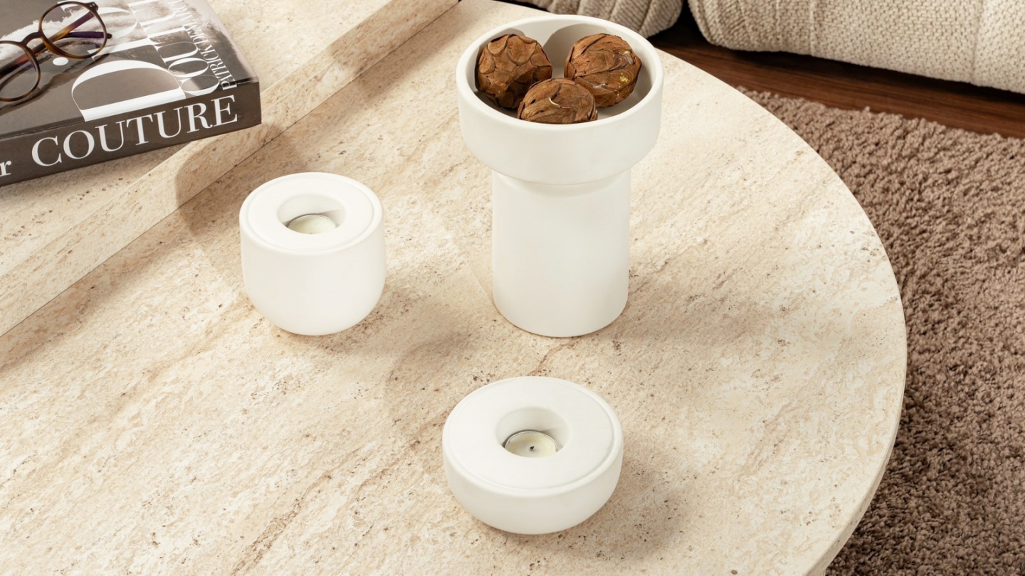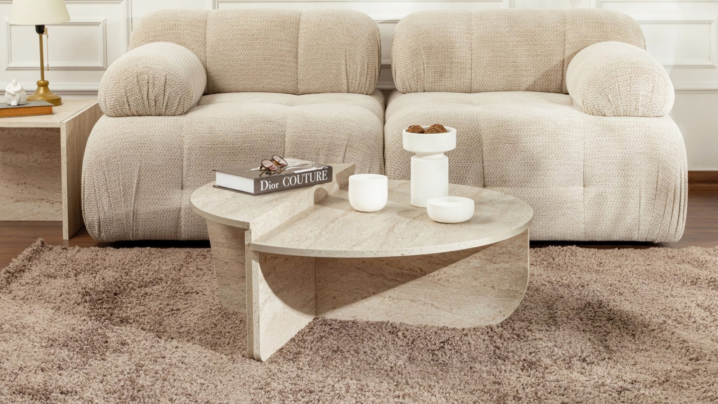 • Table basse modulable composée de deux éléments semi-circulaires, à utiliser ensemble ou séparément selon vos envies.