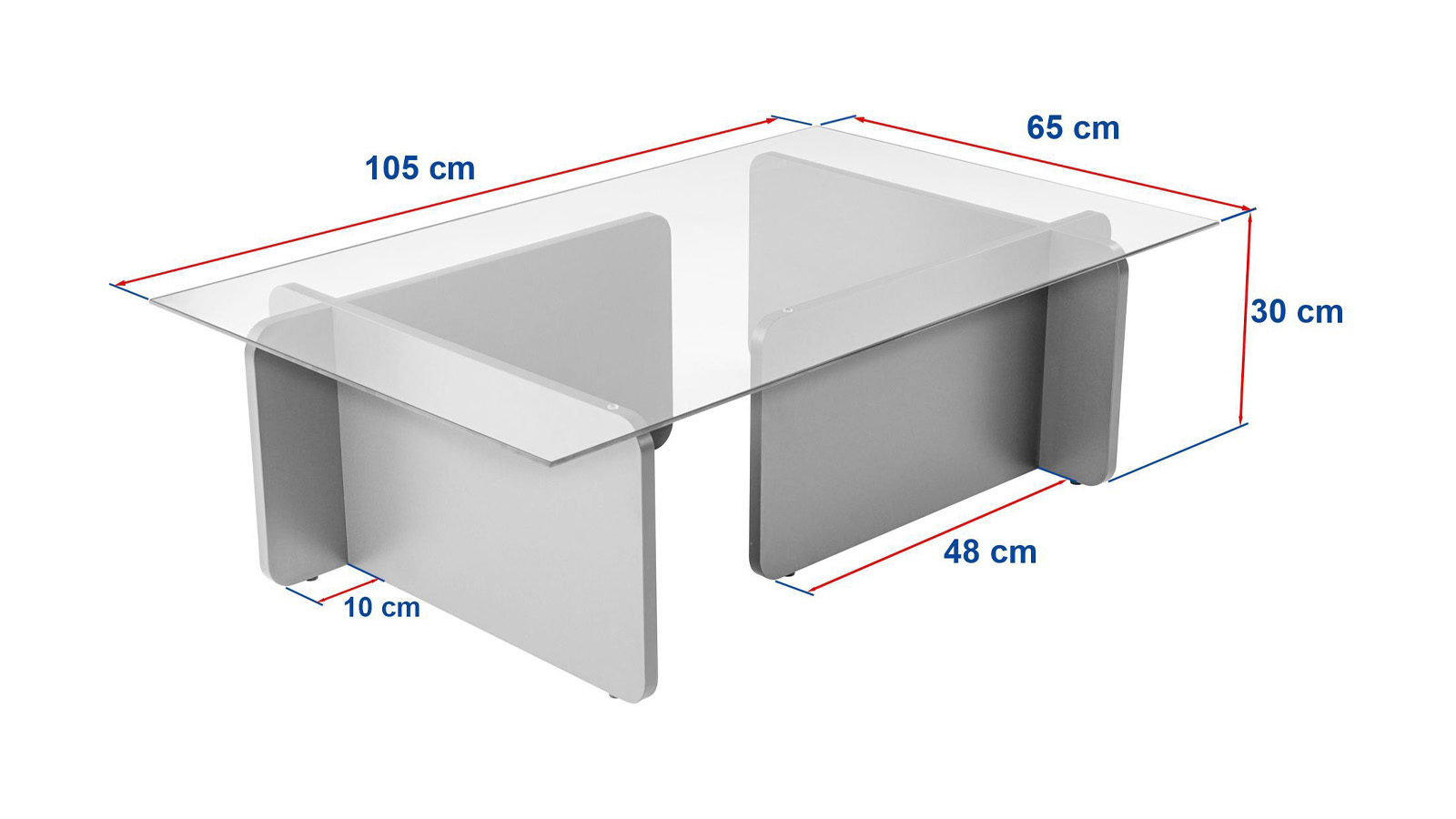 En stockTable basse - Naelis• Matière : Mélamine, verre trempé• Couleur : Effet bois• Forme : rectangulaire• Piètement asymétrique, pour un rendu moderne et épuré.• Dimensions totales : 105 x 65 x 30 cm
