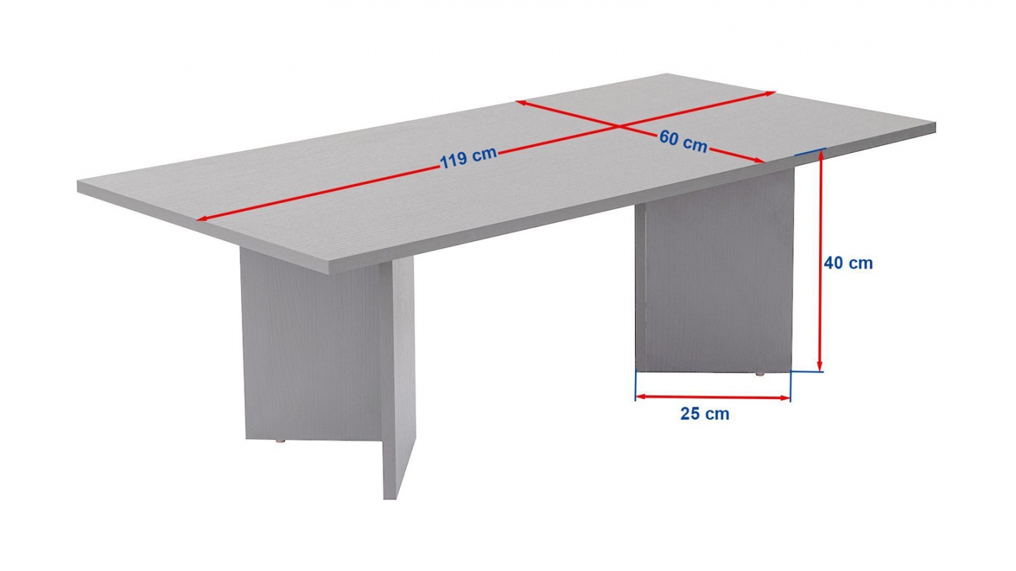 En stockTable basse - Taona• Matière : Mélamine• Couleur : Effet bois• Forme : rectangulaire• Piètement en panneaux croisés pour une silhouette épurée et contemporaine• Dimensions totales : 119 x 60 x 40 cm