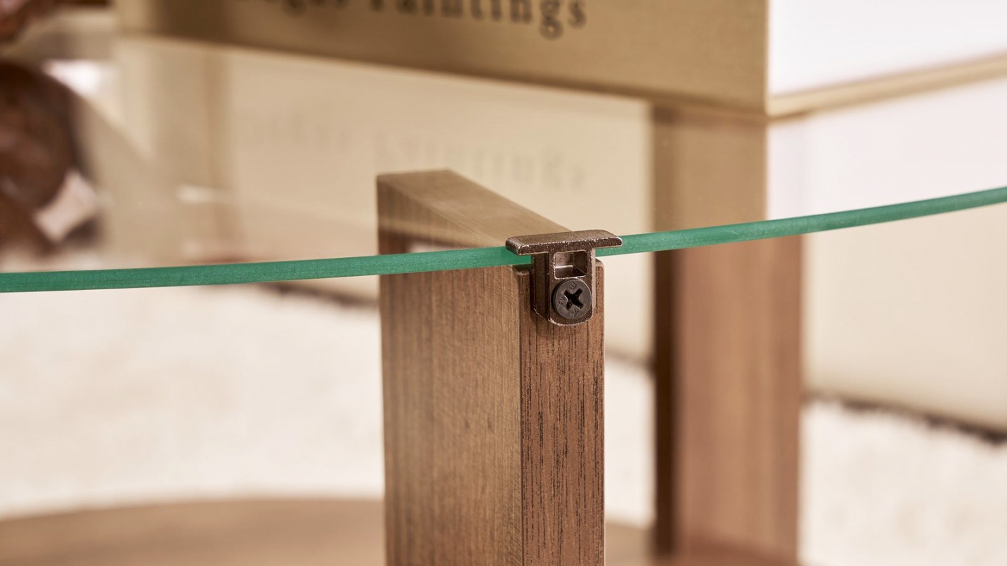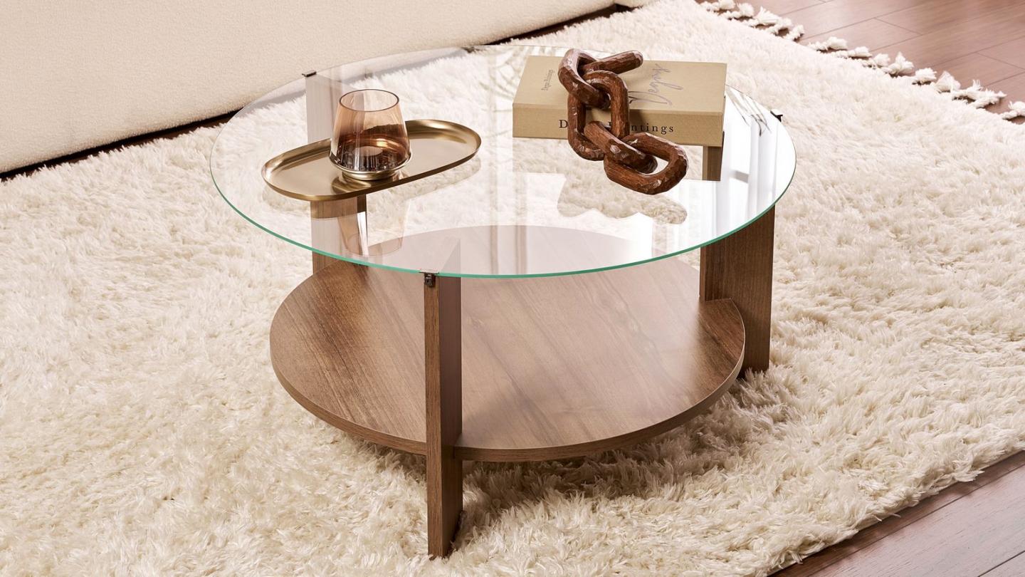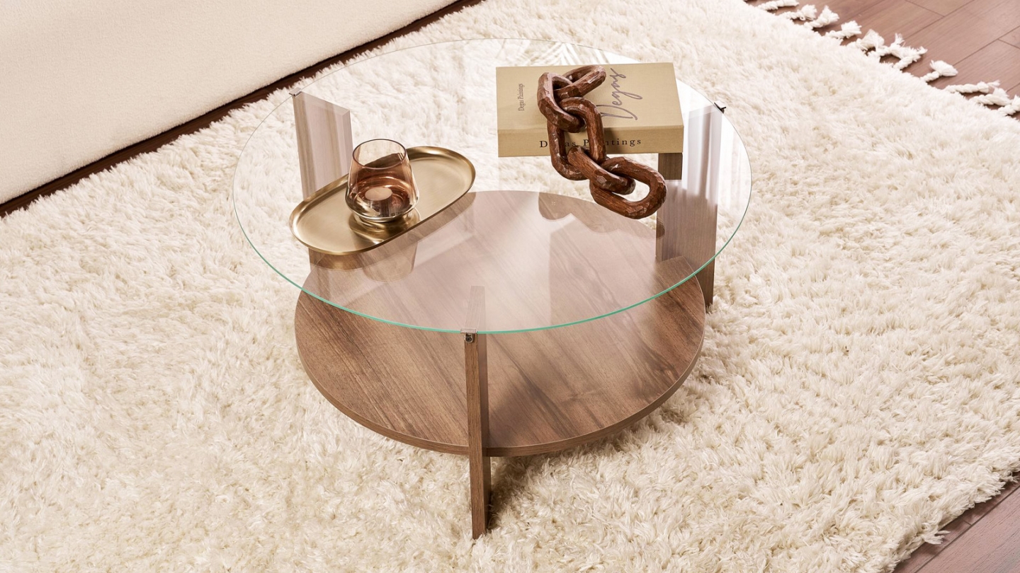 • Couleur : Effet Noyer - Plateau en verre transparent