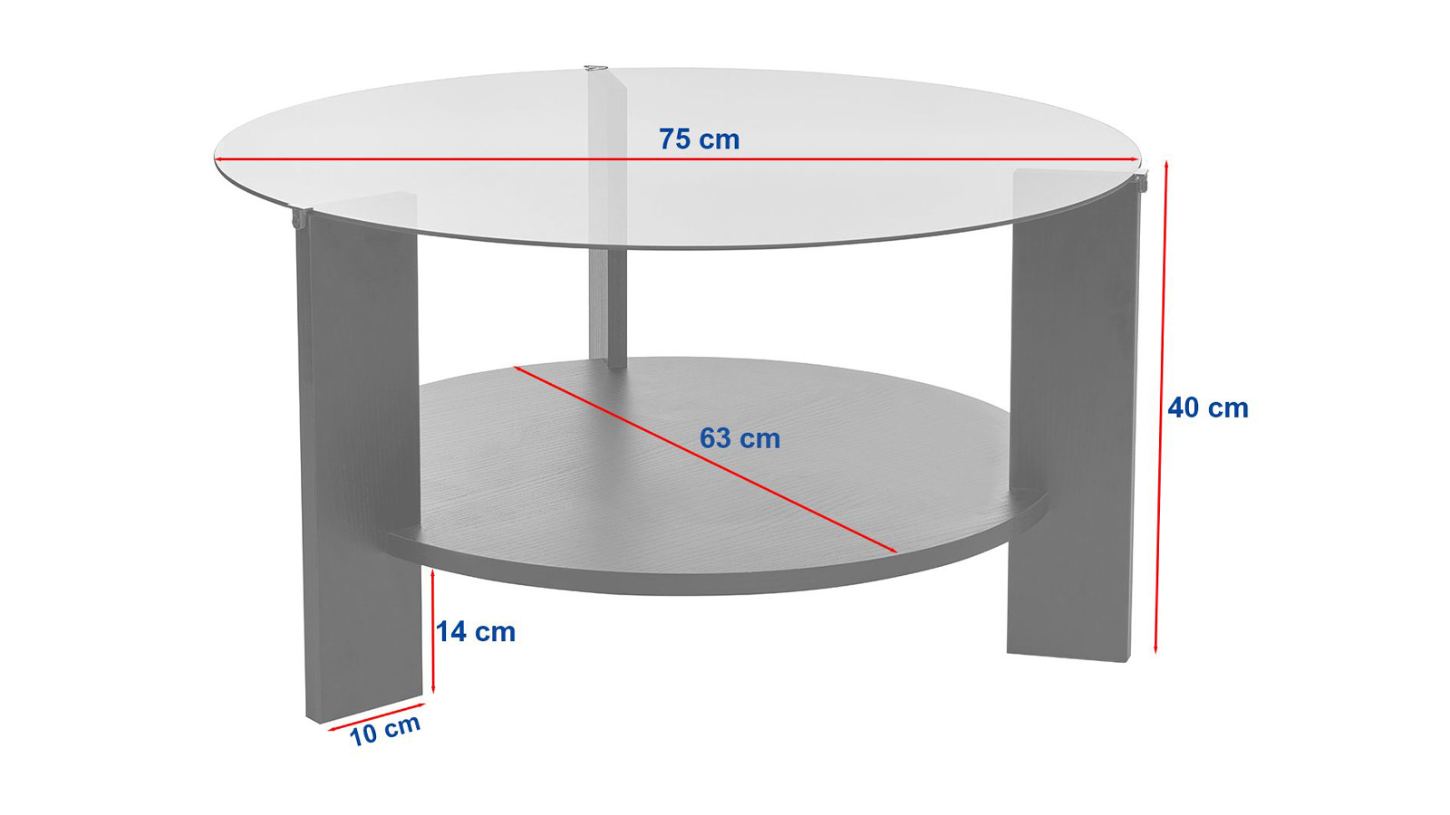 • Plateau inférieur en bois Ø63 cm - Plateau supérieur en verre Ø75 cm