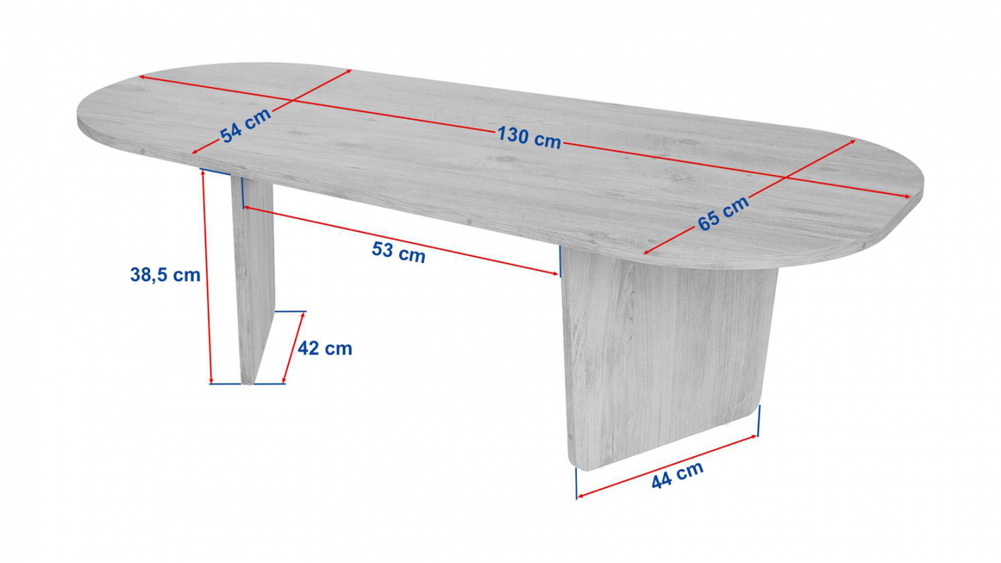 • Table basse de forme ovale asymétrique, soutenue par deux pieds pleins obliques pour un style moderne et harmonieux.