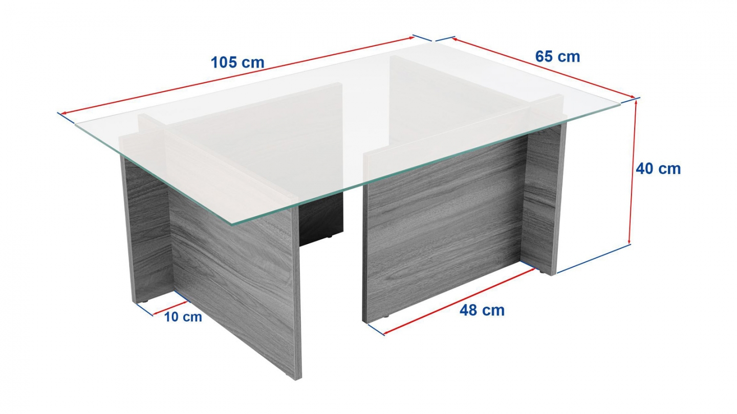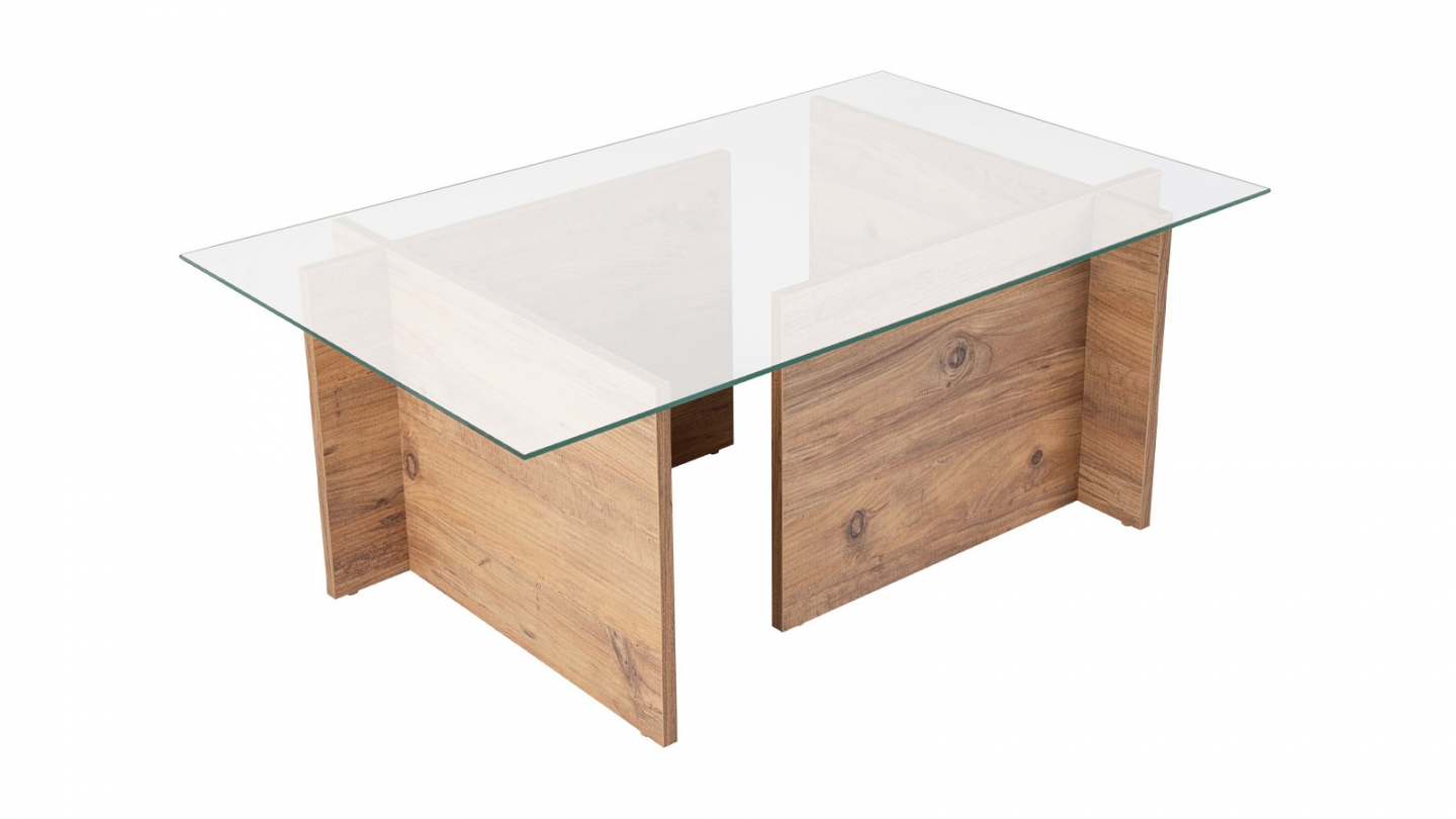 Table basse - Kael• Matière : Mélamine, verre trempé• Couleur : Effet travertin• Forme : rectangulaire• Design graphique, associant un plateau en verre à un piètement asymétrique croisé en bois au style contemporain• Dimensions totales : 105 x 65 x 40 cm