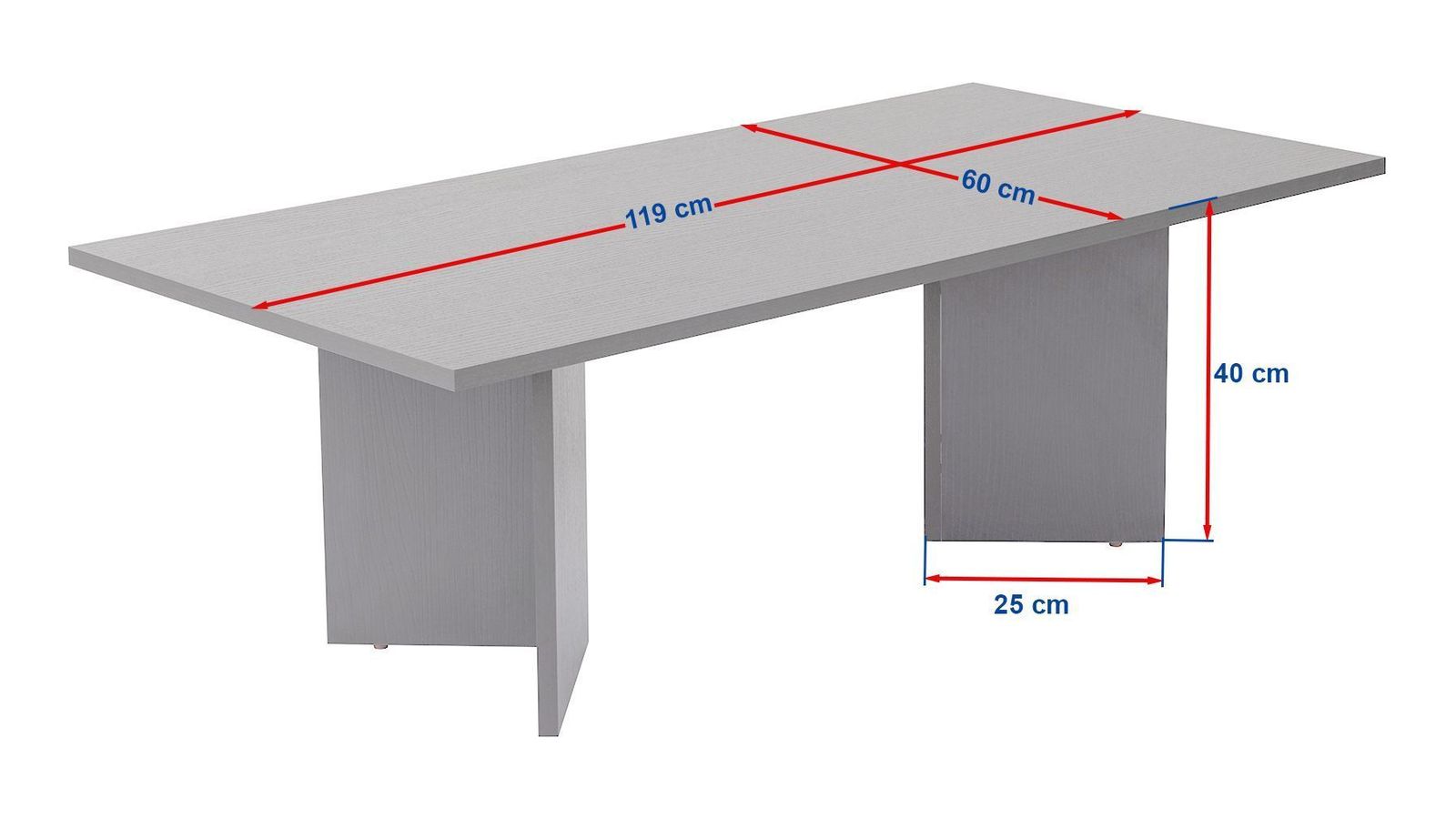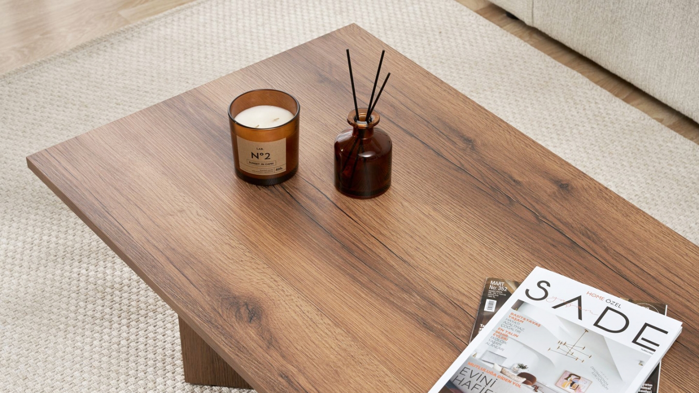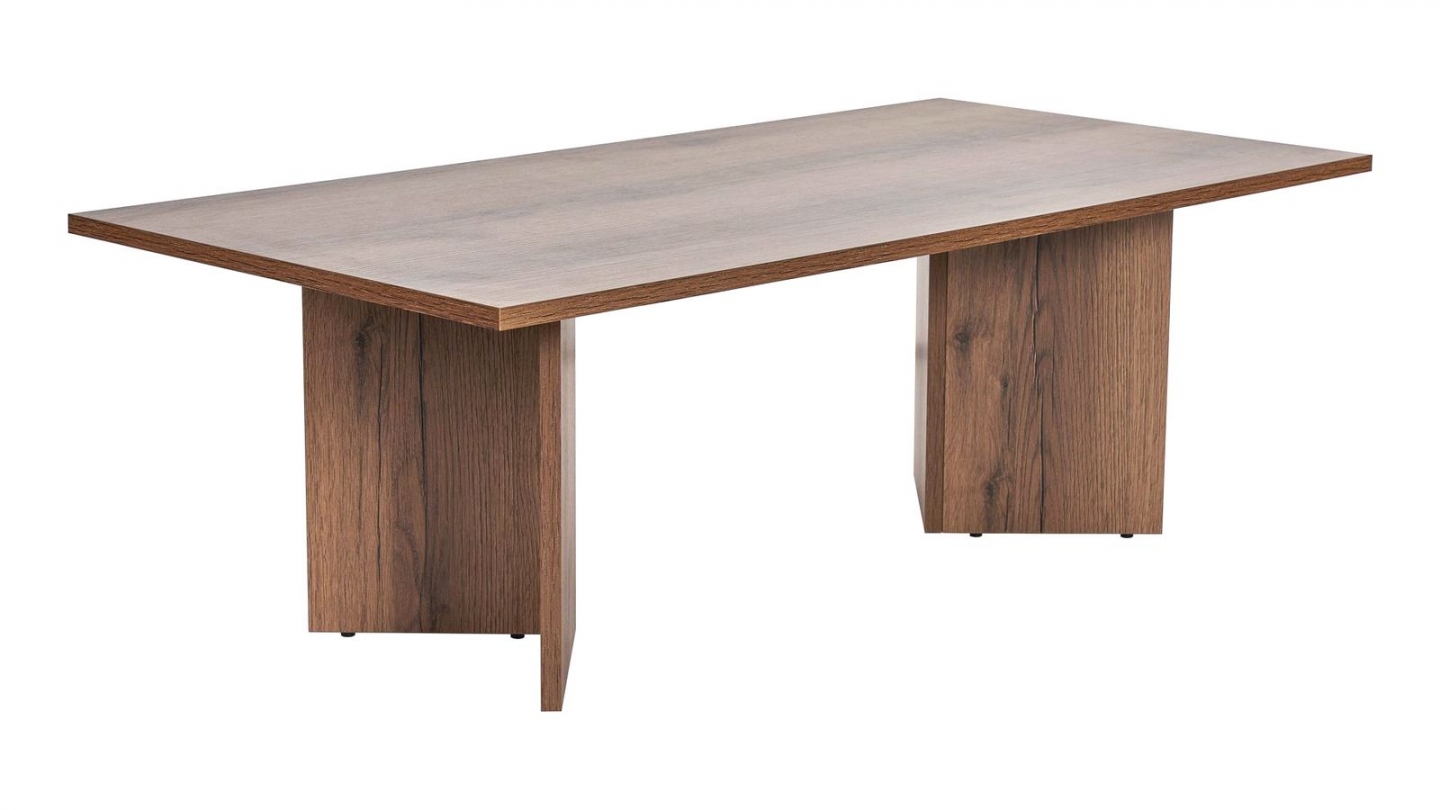 En stockTable basse - Taona• Matière : Mélamine• Couleur : Effet bois• Forme : rectangulaire• Piètement en panneaux croisés pour une silhouette épurée et contemporaine• Dimensions totales : 119 x 60 x 40 cm