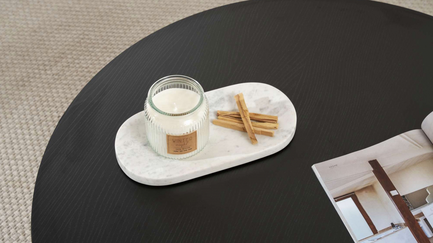 Table basse - Zelis• Matière : Mélamine• Couleur : Effet travertin• Forme : ronde• Design épuré, porté par un piètement croisé asymétrique au style contemporain• Dimensions totales : 90 x 90 x 40 cm