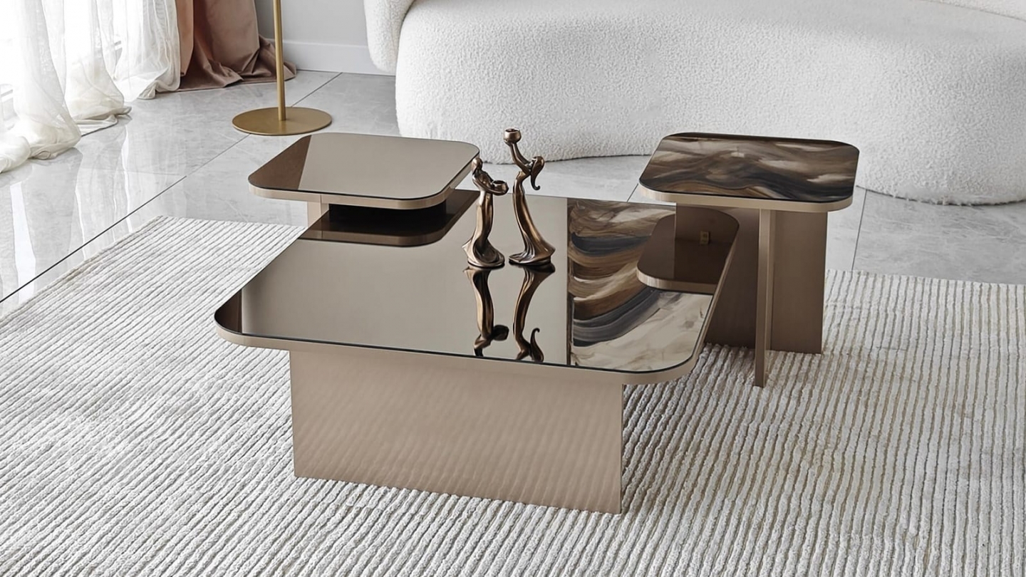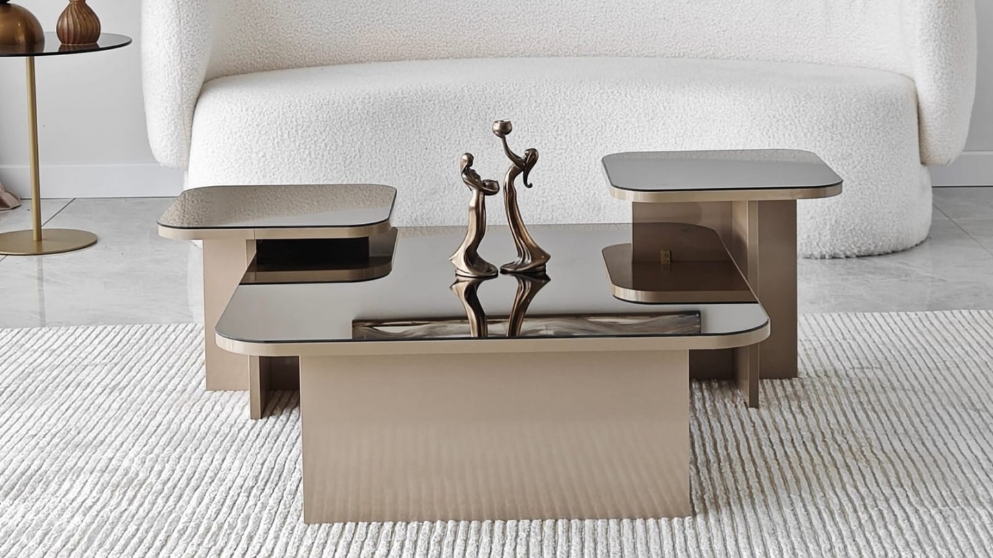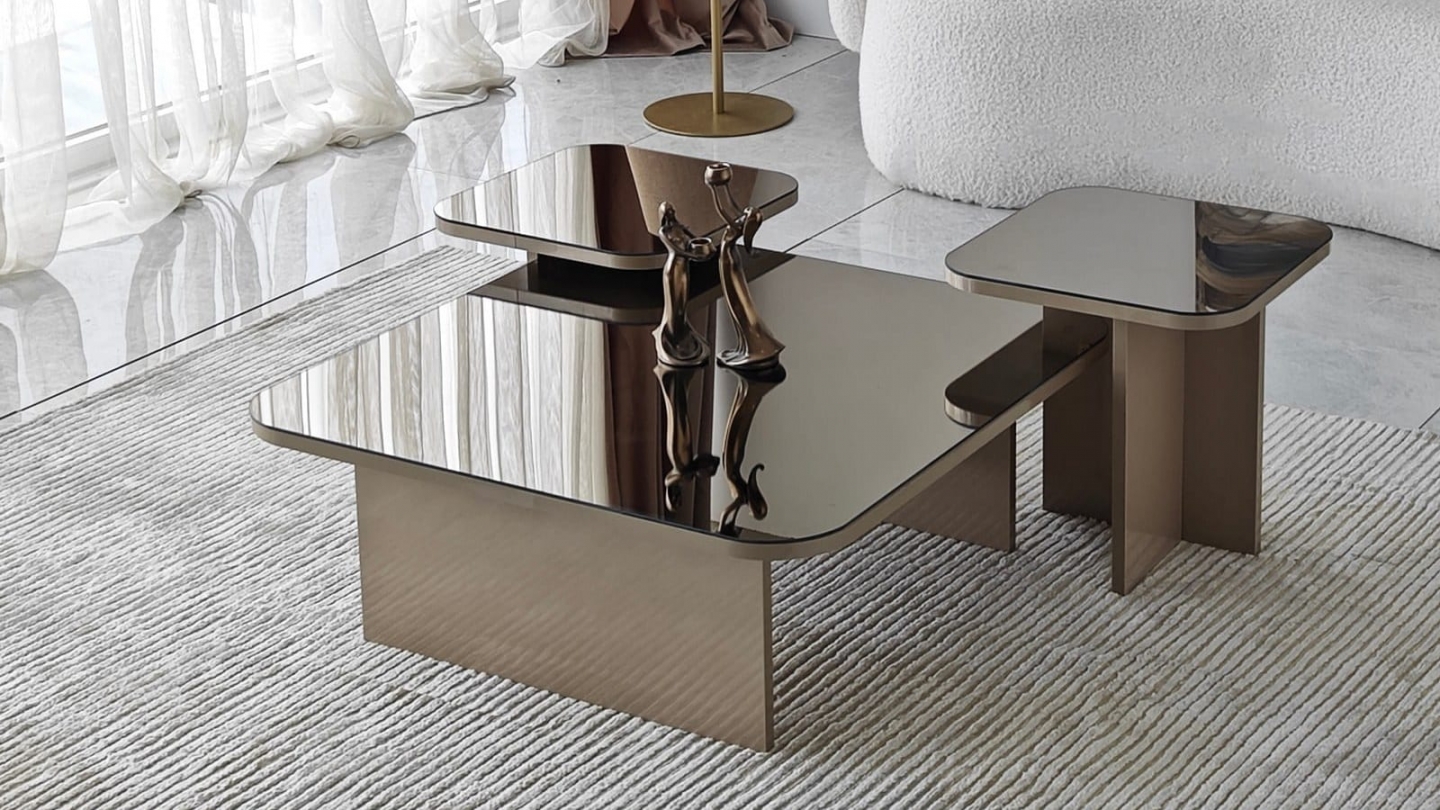 • Lot de 3 tables basses gigognes au design contemporain, aux lignes épurées et finitions brillantes pour un salon élégant et raffiné.