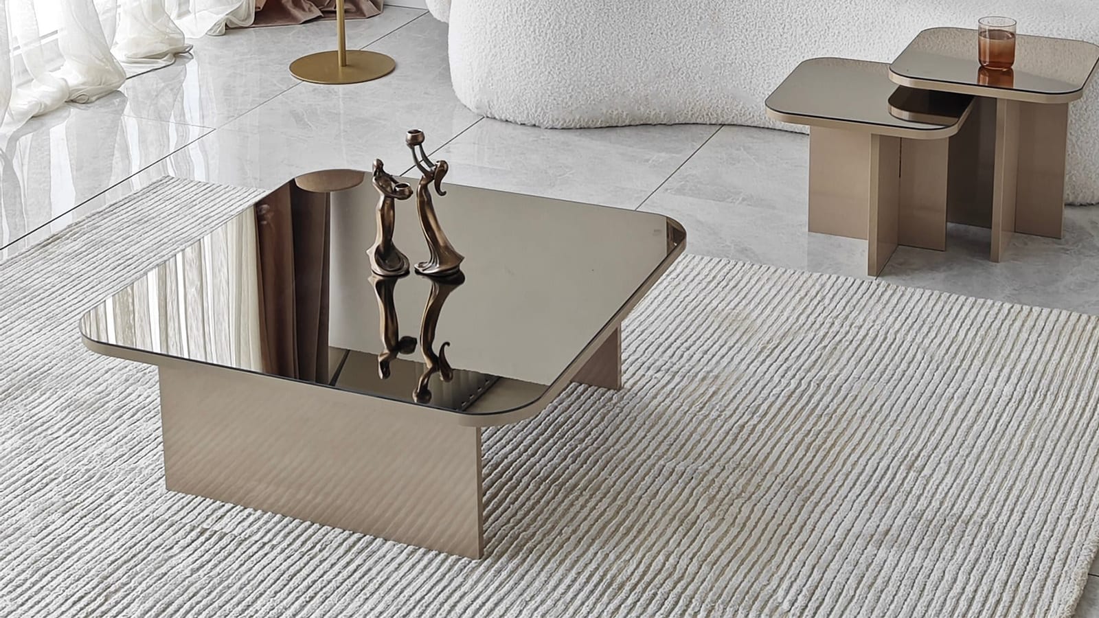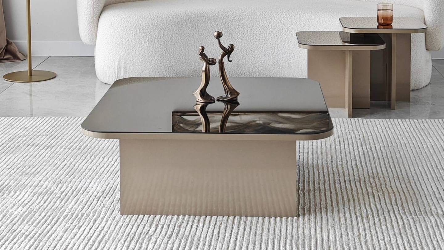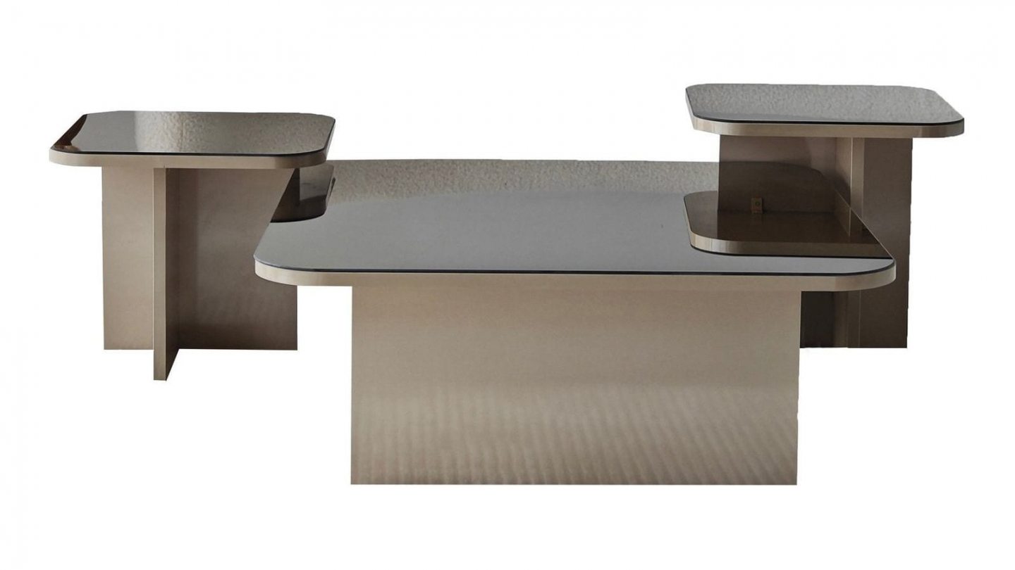 • Lot de 3 tables basses gigognes au design contemporain, aux lignes épurées et finitions brillantes pour un salon élégant et raffiné.