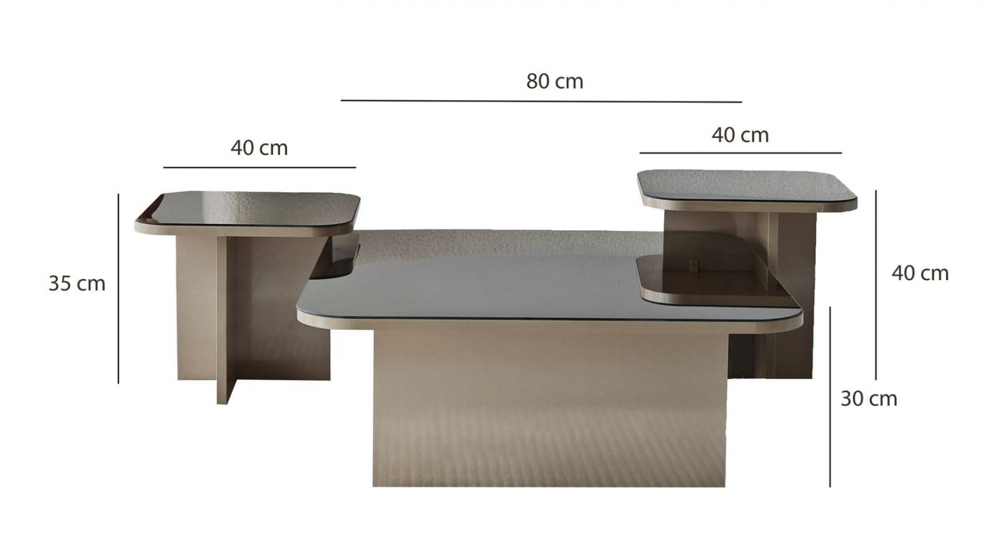 • Dimensions totales : Table 1 : 80 x 80 x 30 cm - Table 2 : 40 x 40 x 35 cm - Table 3 : 40 x 40 x 40 cm