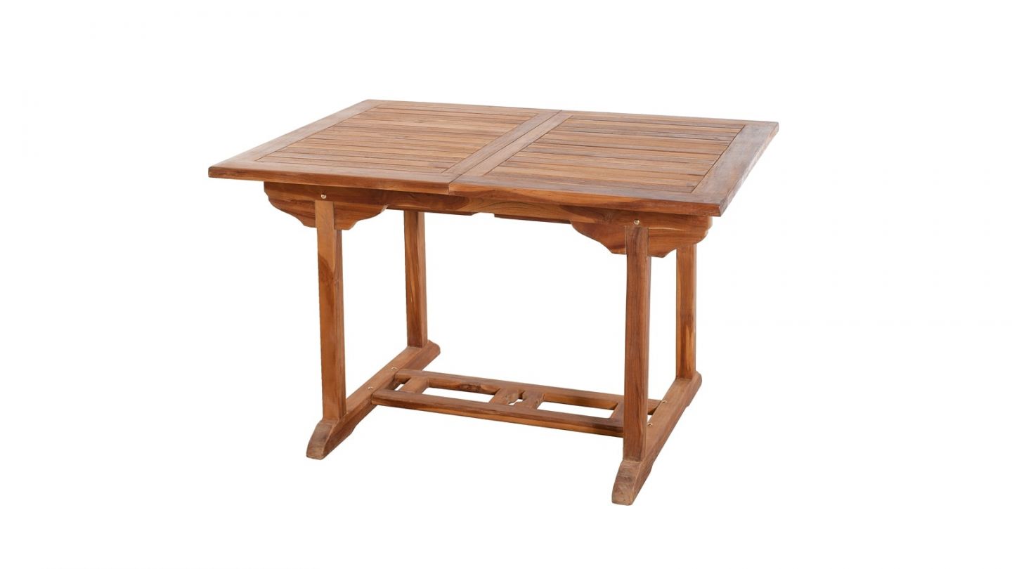 En stock• Style naturel• Table rectangulaire• Double extension• Matière : teck massif• Piètement droit• Dimensions : 200/300 x 120 x 75,5 cm• Garantie 2 ans
