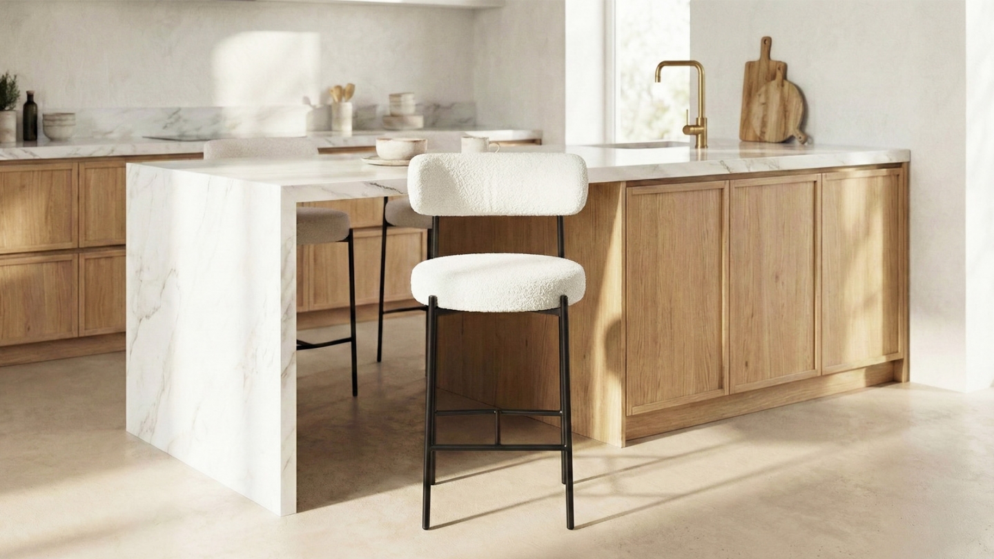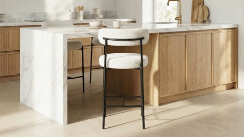 Le mariage du tissu bouclé beige et de la structure en métal noir crée un look moderne et sophistiqué qui s'intègre parfaitement à divers styles de décoration intérieure.