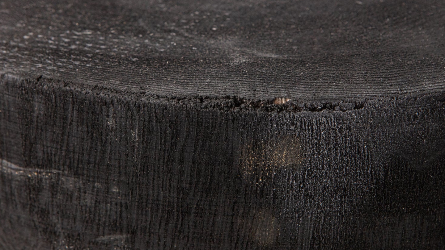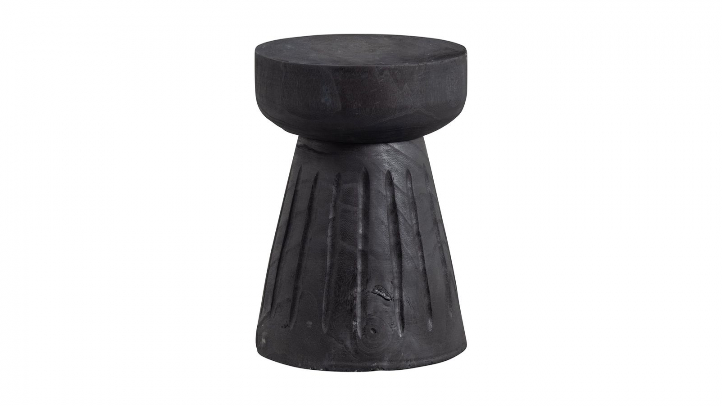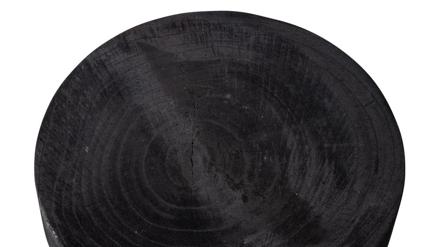 • Tabouret en bois massif teinté noir, au caractère naturel affirmé