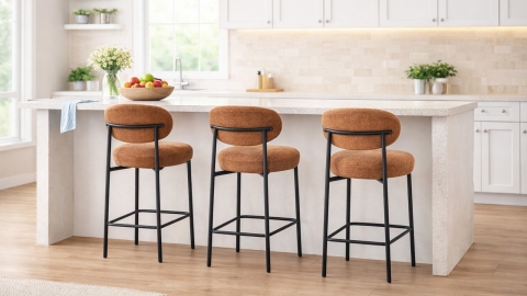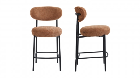 Le tabouret de bar Orla séduit par son design contemporain et équilibré, idéal pour aménager un îlot de cuisine ou un espace bar avec caractère. Son revêtement en tissu chenille terracotta 400 g/m², certifié Oekotex®, offre une texture douce et enveloppante, tout en assurant une excellente résistance à l’usage quotidien. Sa teinte terracotta apporte une note chaleureuse et tendance, parfaite pour créer une atmosphère conviviale et accueillante dans la cuisine ou la salle à manger.