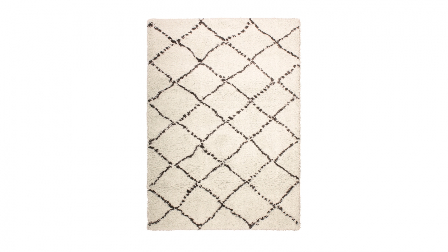 Rupture de stock• Tapis écru en relief motif géométrique • Tapis poils en relief d'intérieur • Texture moelleuse • Matière : polypropylène • Hauteur du fil 12 mm - Densité 2200gr/m² • Dimensions : 200x290
