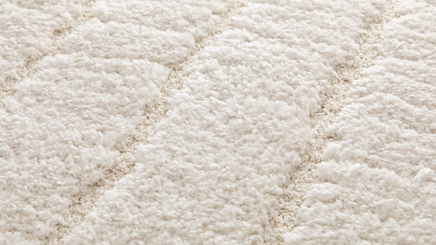 Rupture de stock• Tapis écru en relief motif géométrique • Tapis poils en relief d'intérieur • Texture moelleuse • Matière : polypropylène • Hauteur du fil 12 mm - Densité 2200gr/m² • Dimensions : 200x290