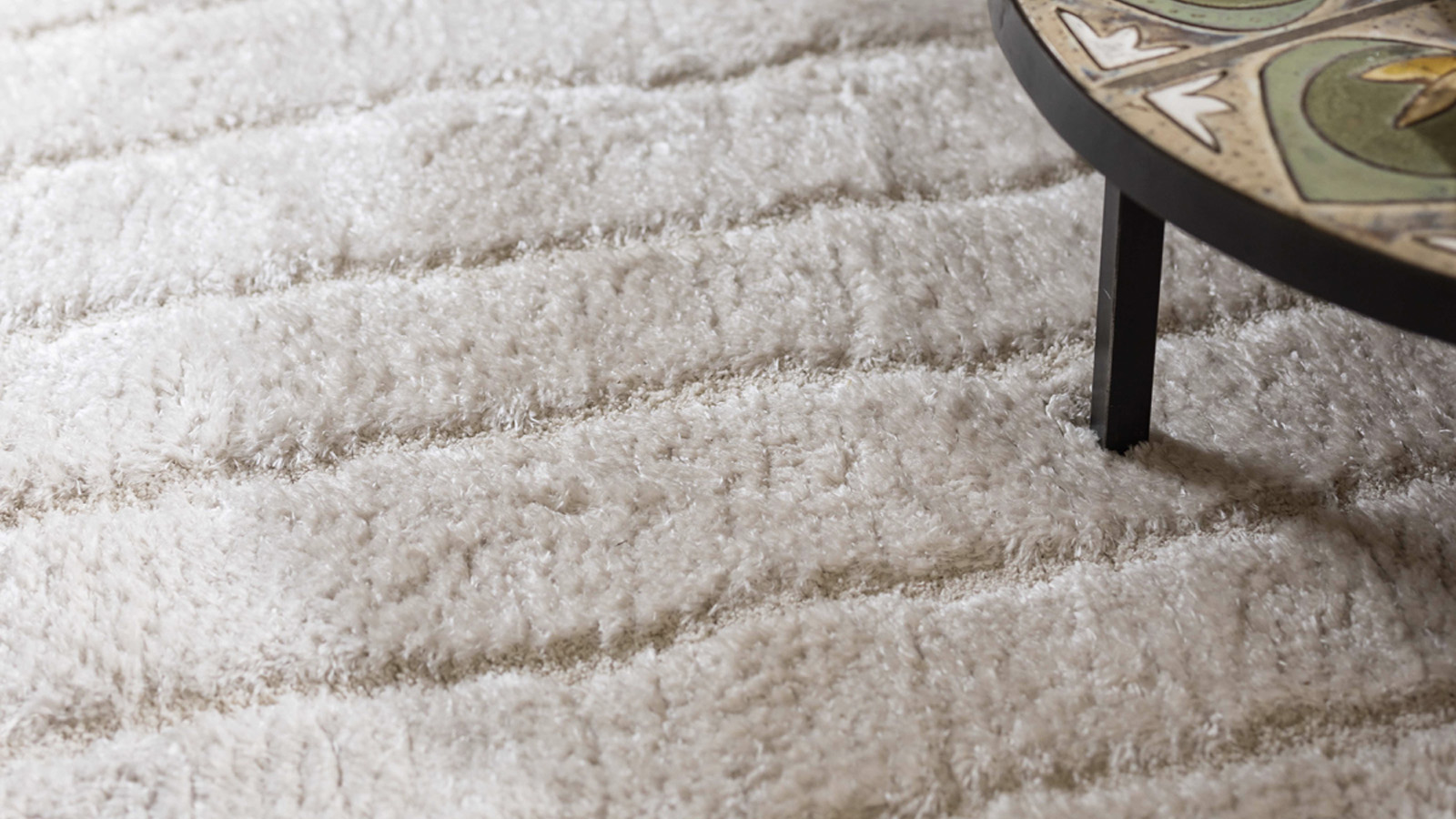 •Tapis au relief élégant et à la texture moelleuse, en polyester recyclé. Fabriqué en Europe, il allie douceur, style épuré et finition soignée pour un intérieur chaleureux et raffiné.