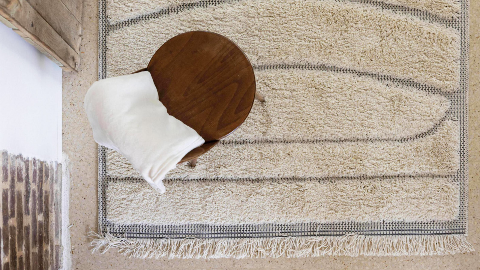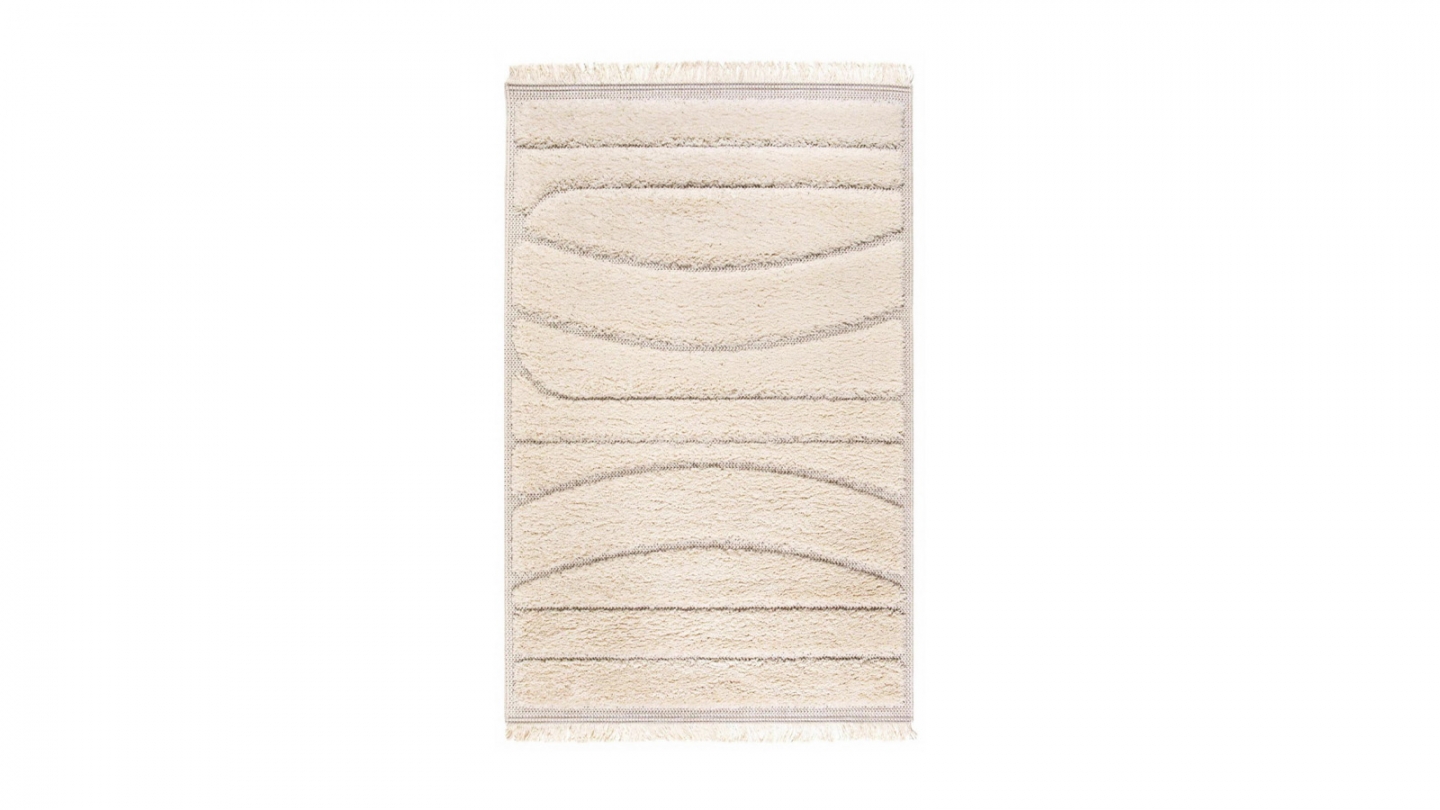 Rupture de stock• Tapis beige en relief arcs • Tapis poils en relief d'intérieur • Texture moelleuse • Matière : polypropylène • Hauteur du fil 12 mm - Densité 2200gr/m² • Dimensions : 200x290