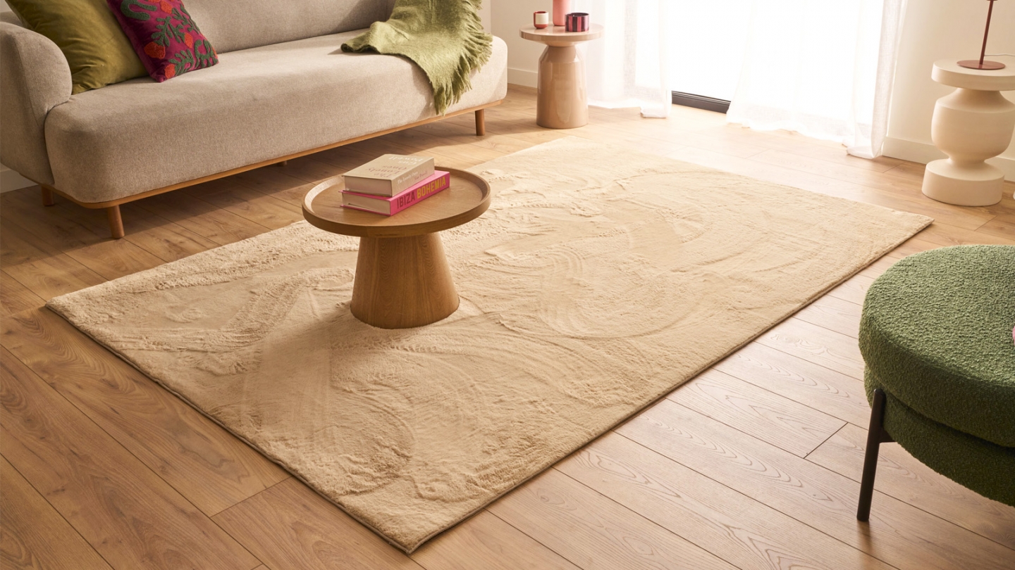 Rupture de stock• Tapis beige en relief arcs • Tapis poils en relief d'intérieur • Texture moelleuse • Matière : polypropylène • Hauteur du fil 12 mm - Densité 2200gr/m² • Dimensions : 200x290