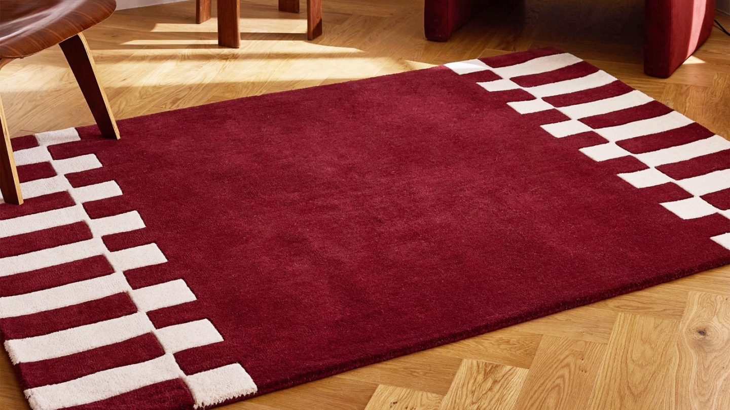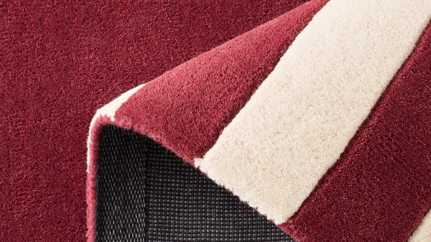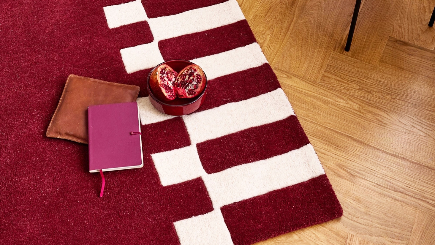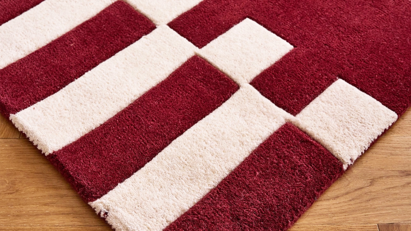 Rupture de stock• Tapis en laine motif géométrique rouge 133x190 cm– tissé main - Burgundy Rhythm• Dimensions :133x190 cm• Couleur :Rouge• Matières : 100% laine et coton• Fait main - qualité premium - 100% laine & coton• Aspirateur et/ou chiffon humide