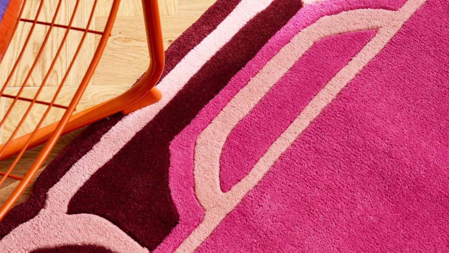 • Tapis en laine motif géométrique rose 200x290 cm – tissé main - Cosmic Pink