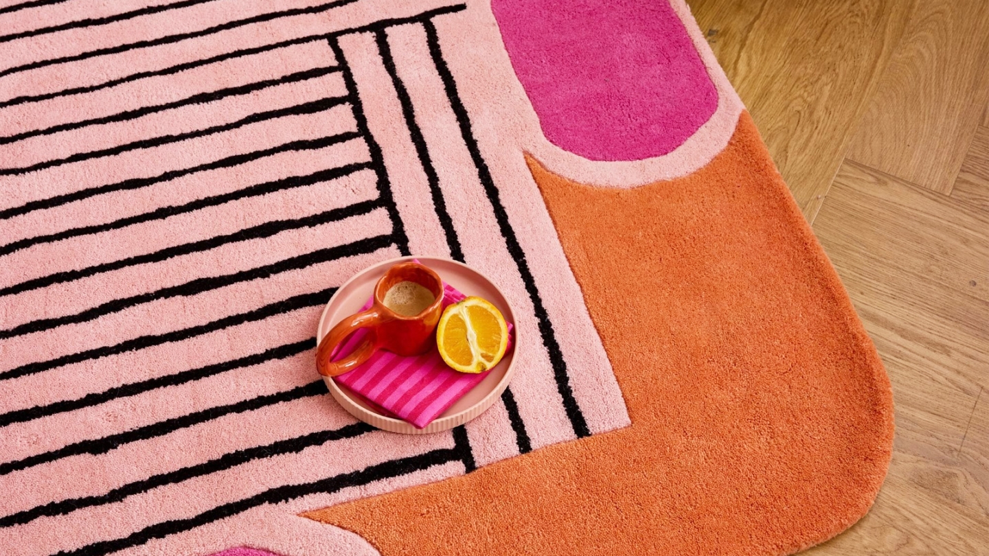 • Tapis en laine motif géométrique orange 160x230 cm– tissé main - Color Lines