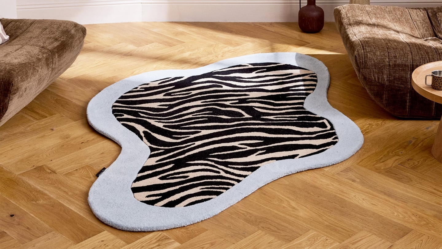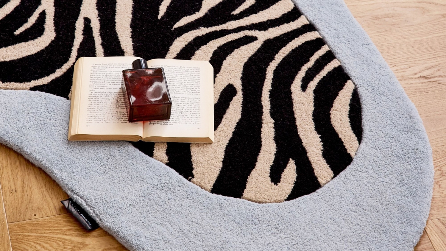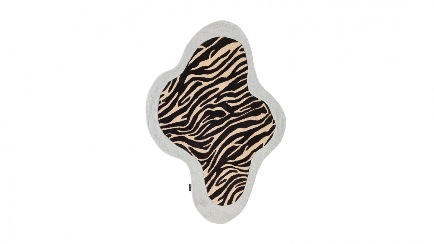 • Tapis en laine forme organique motif zèbre bleu 133x190 cm – tissé main - Blue Safari