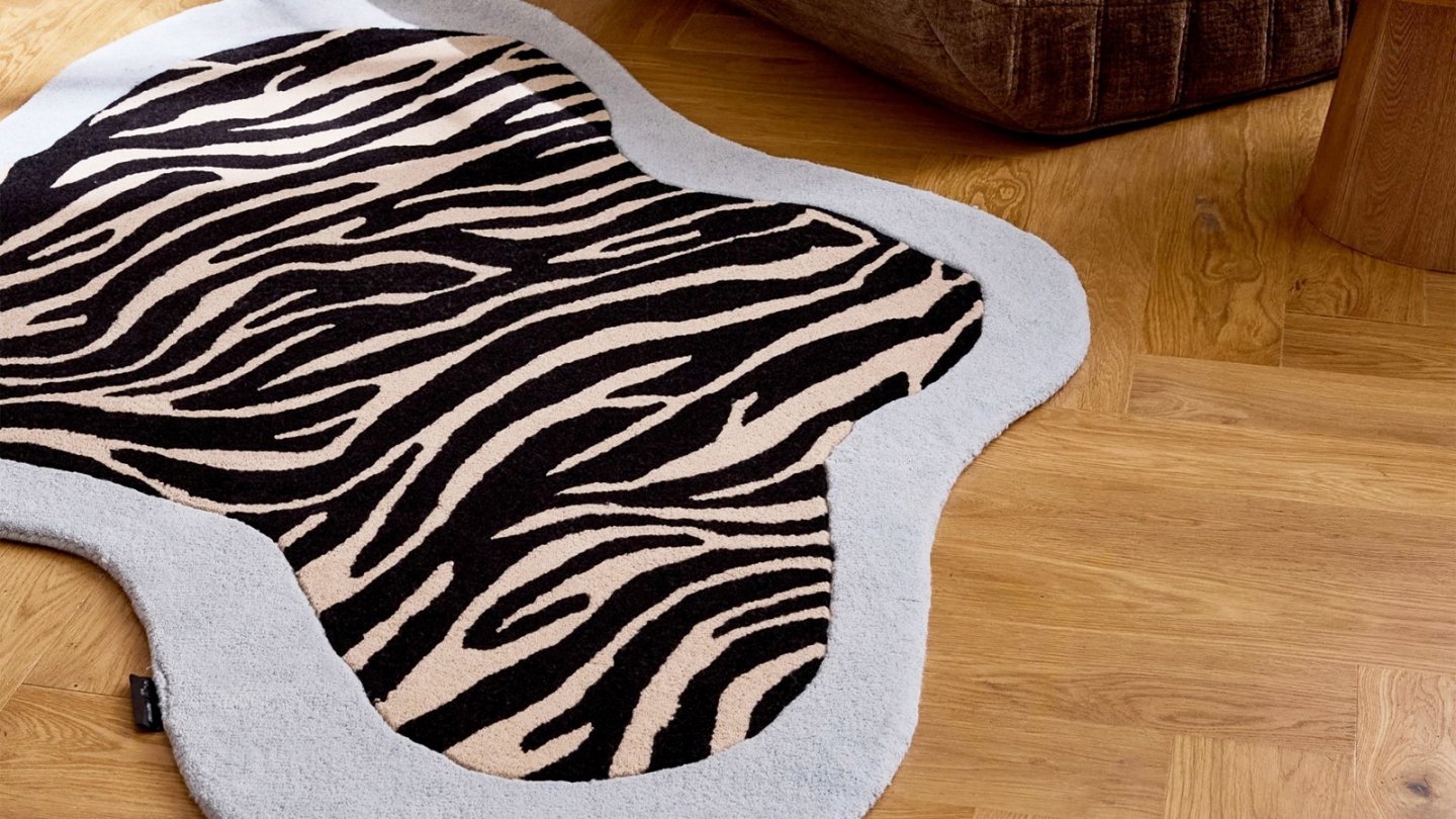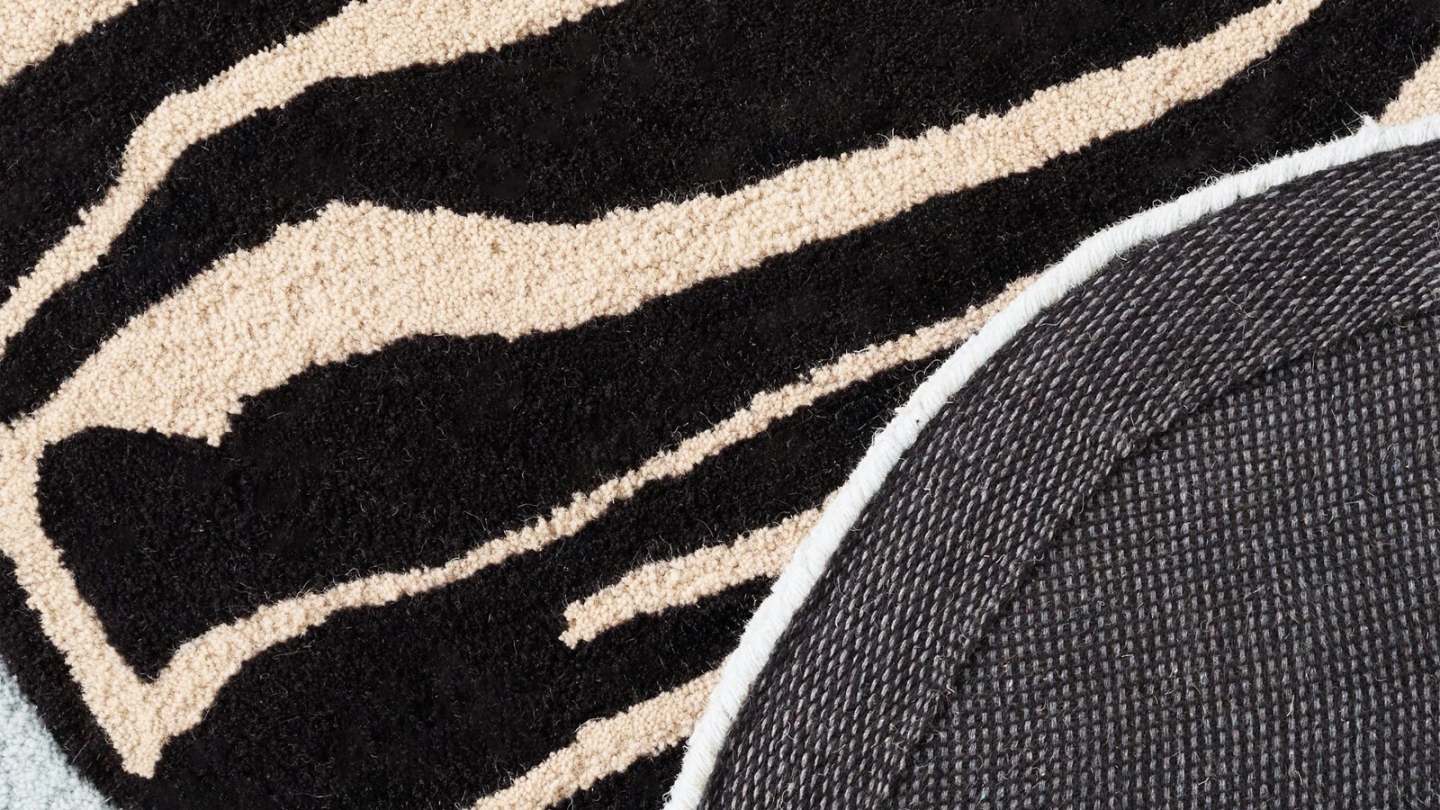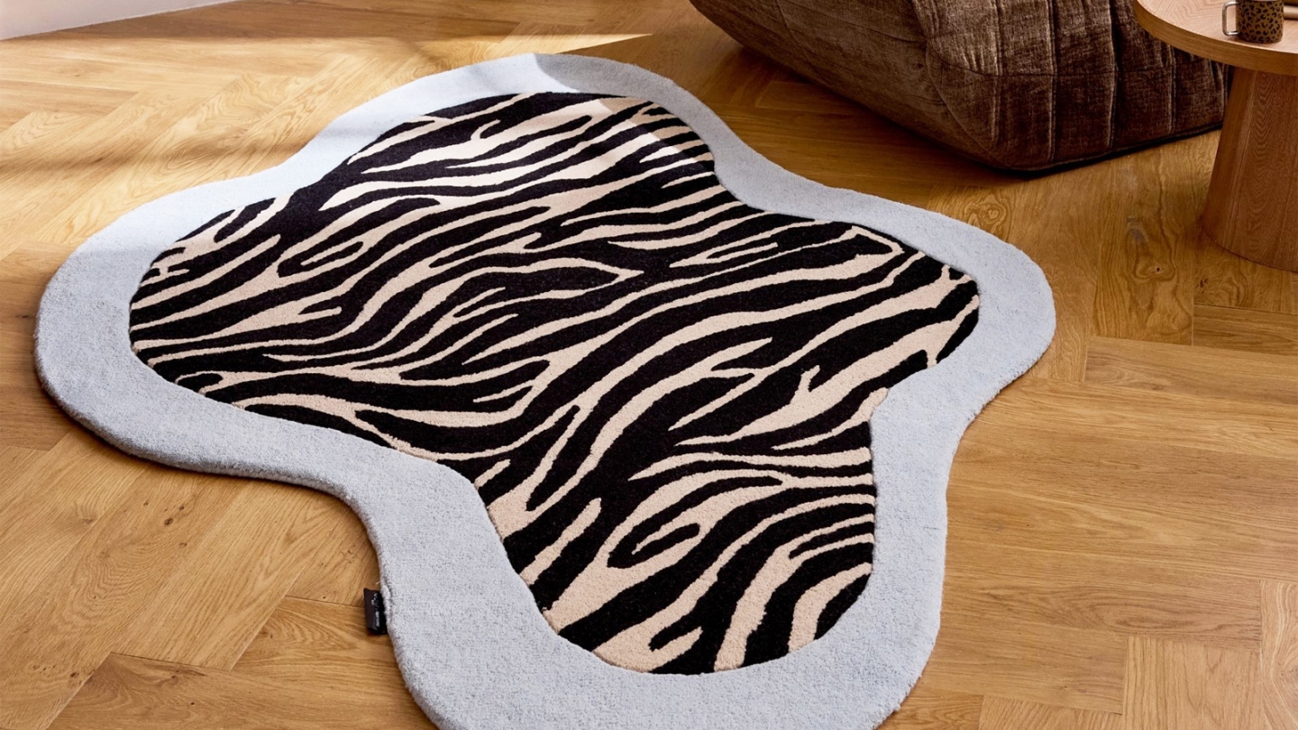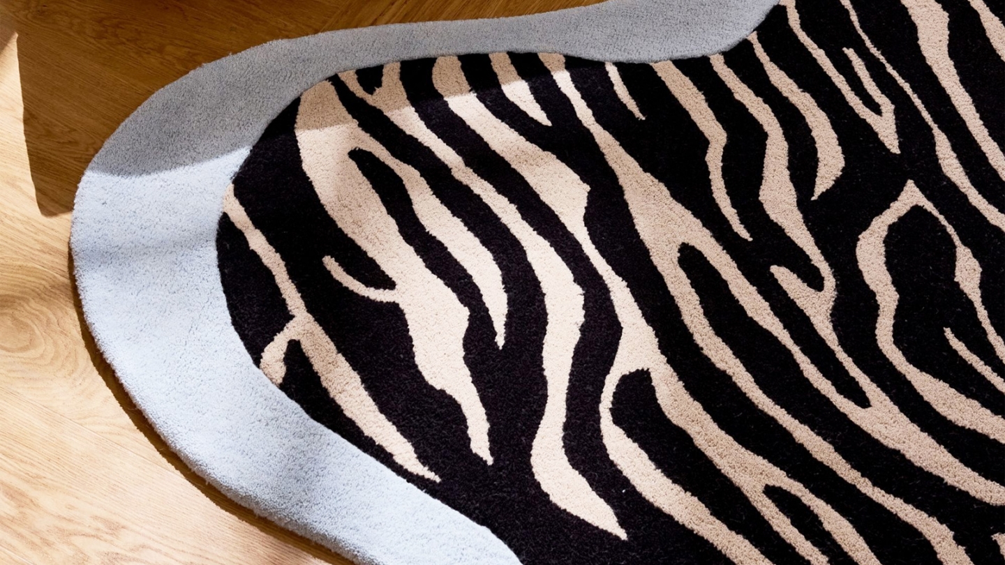 • Tapis en laine forme organique motif zèbre bleu 133x190 cm – tissé main - Blue Safari