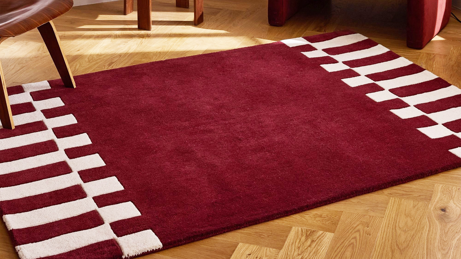 • Tapis en laine motif géométrique rouge 133x190 cm– tissé main - Burgundy Rhythm