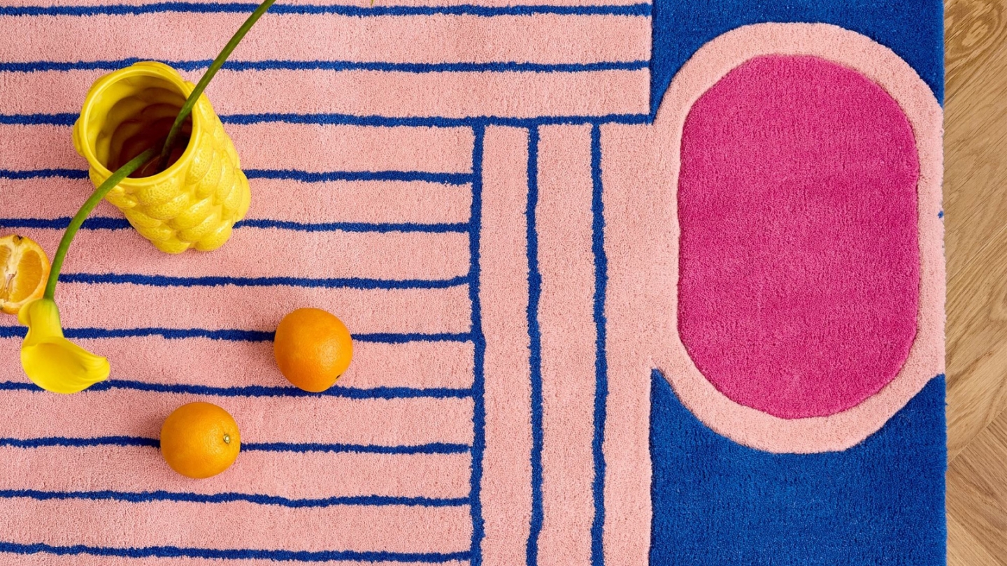 • Tapis en laine motif géométrique bleu 133x190 cm– tissé main - Color Lines