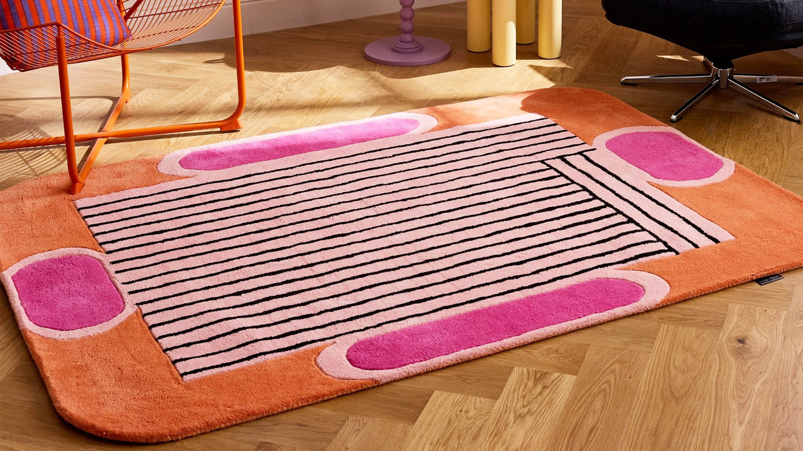 • Tapis en laine motif géométrique orange 133x190 cm– tissé main - Color Lines