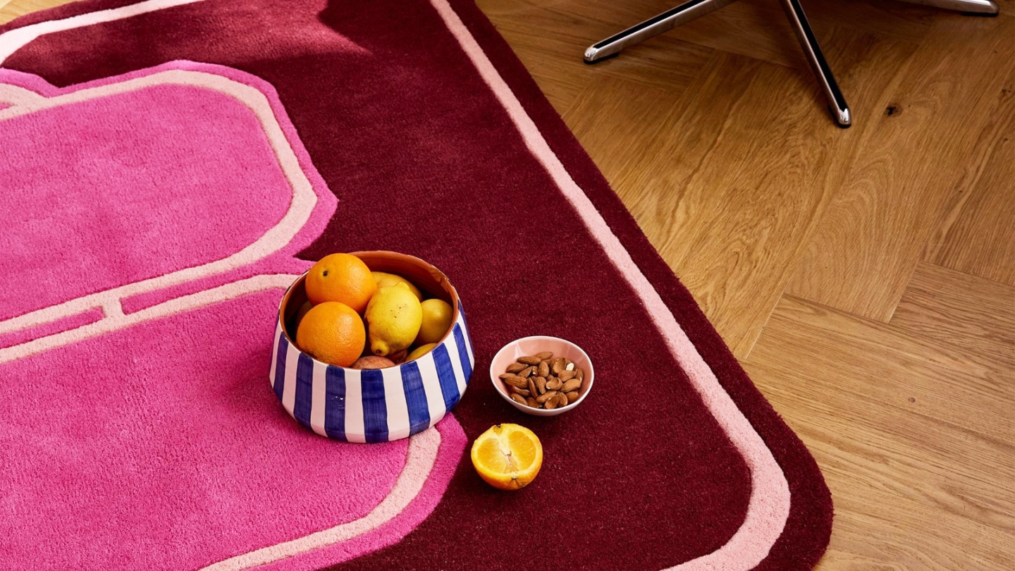 • Tapis en laine motif géométrique rose 133x190 cm– tissé main - Cosmic Pink